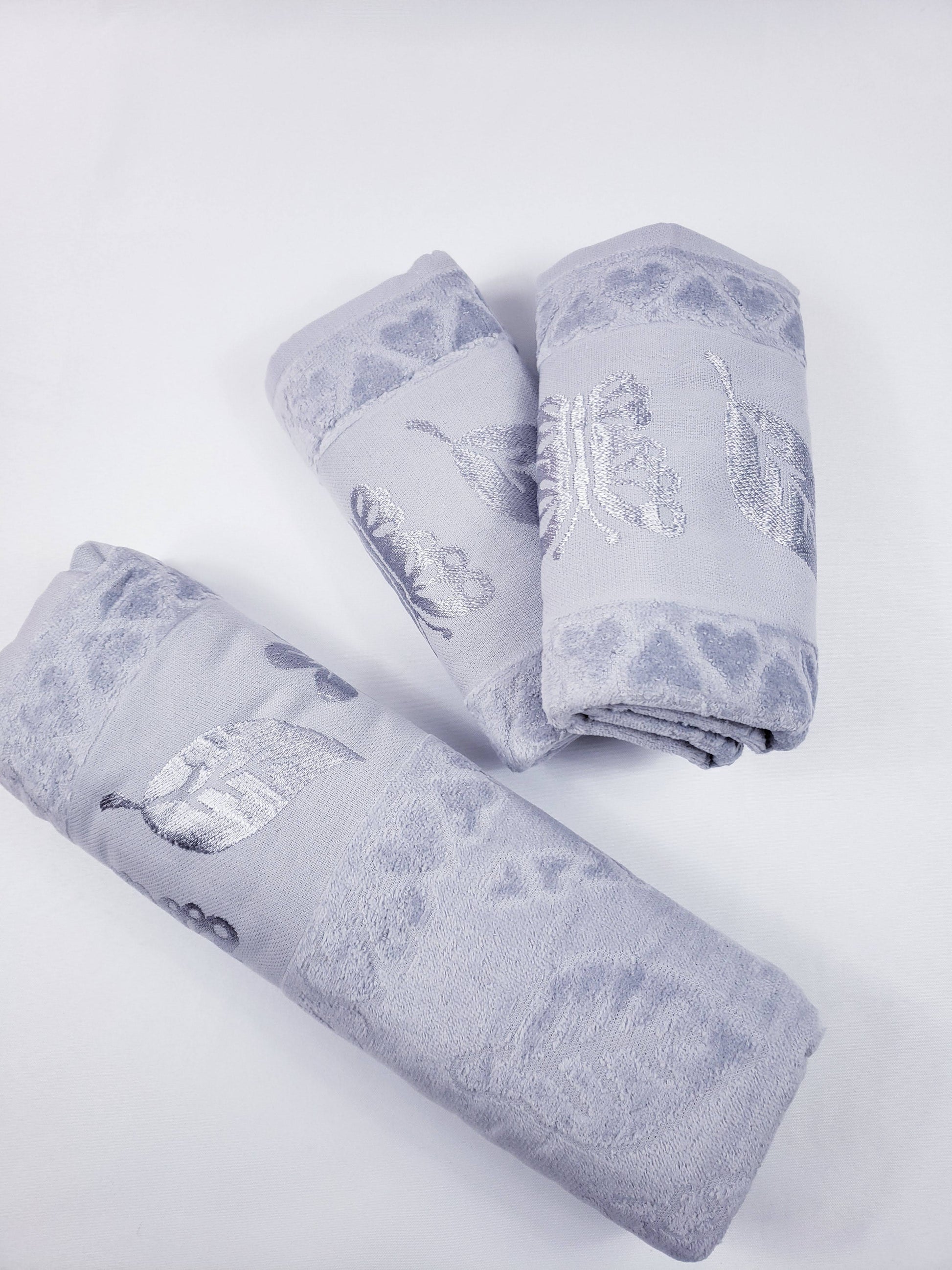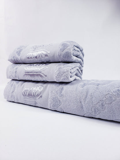 BATH / HAND VELVET TOWEL - Gray Butterfly