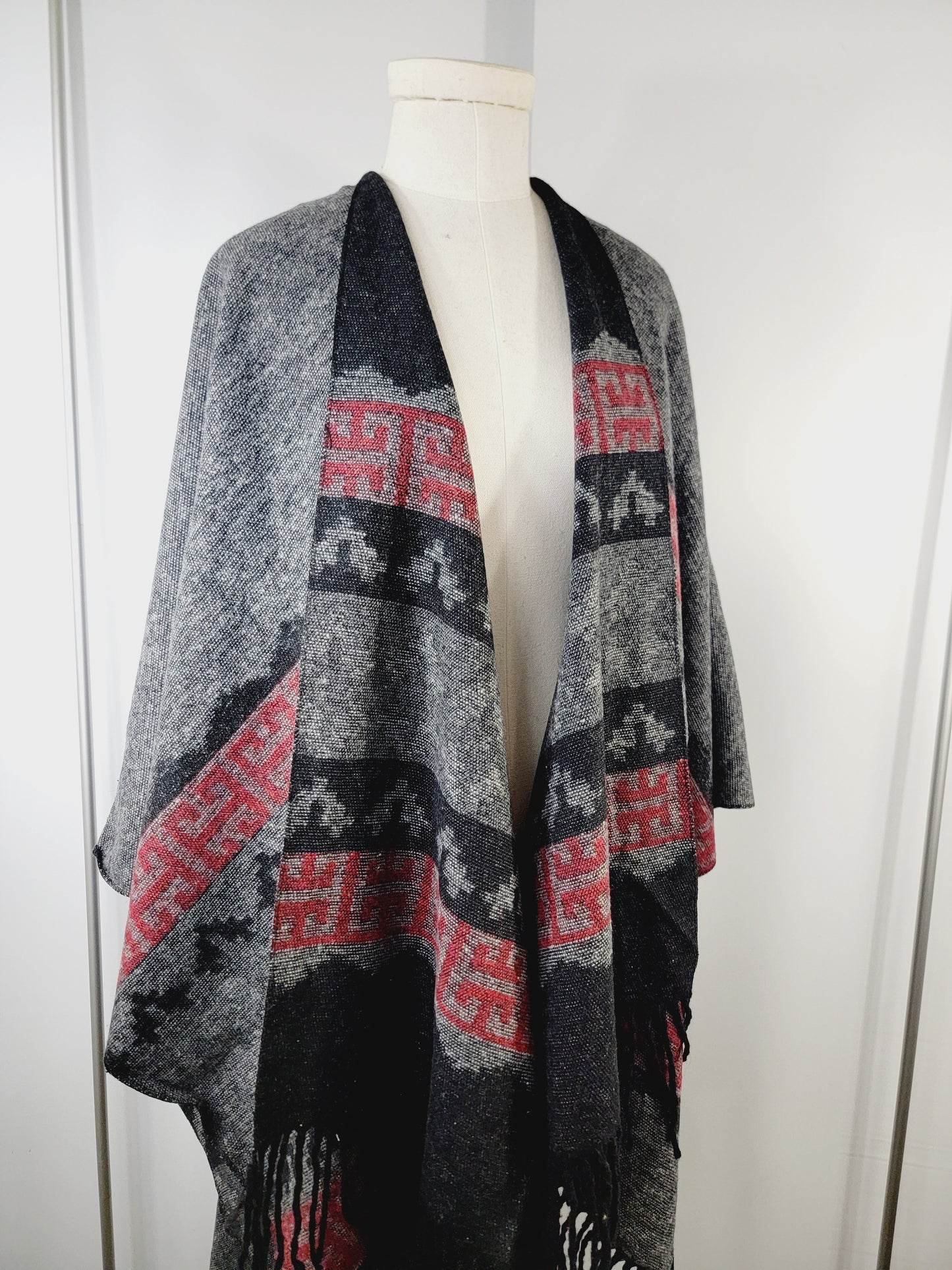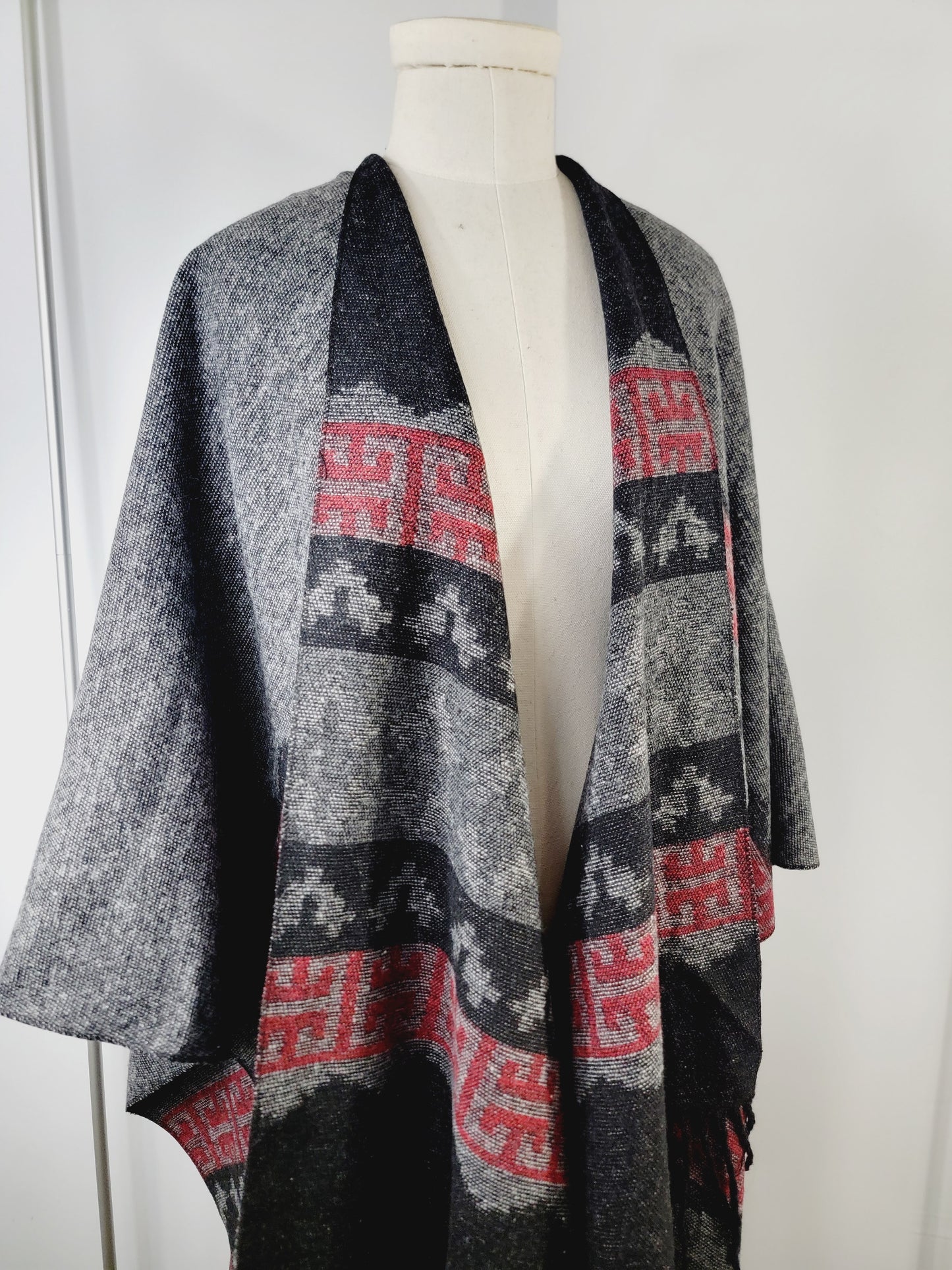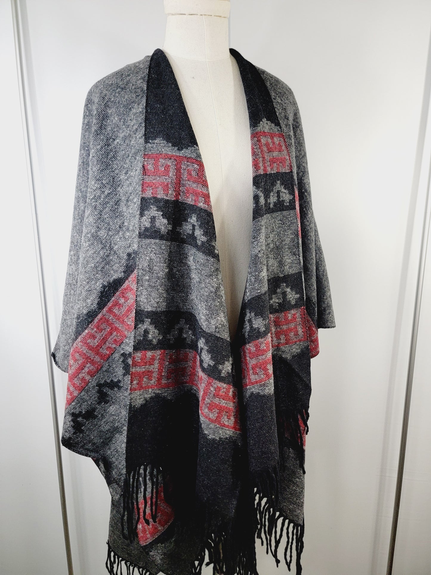 Poncho Shawl, Extra soft - Reversible Gray/Red