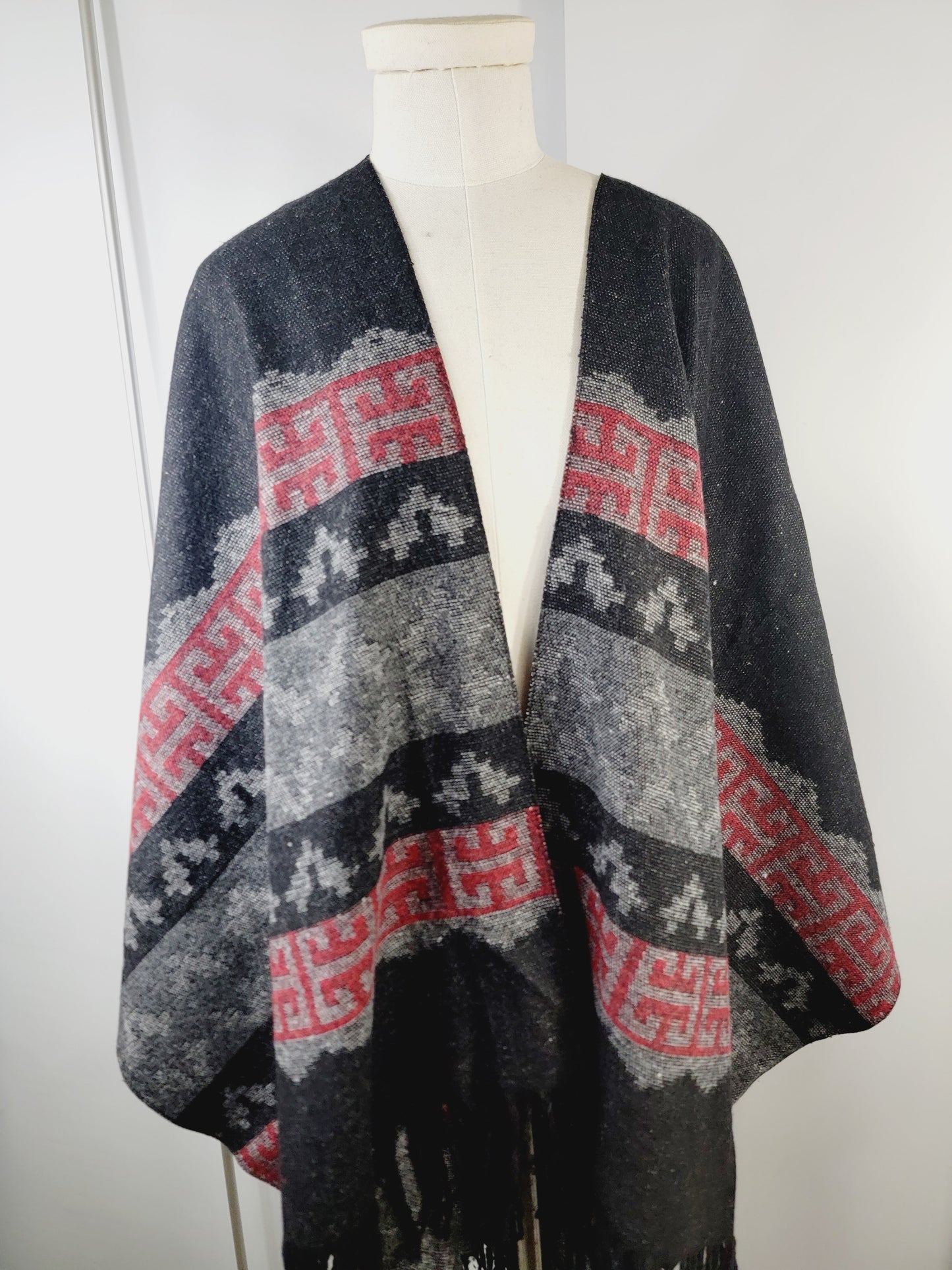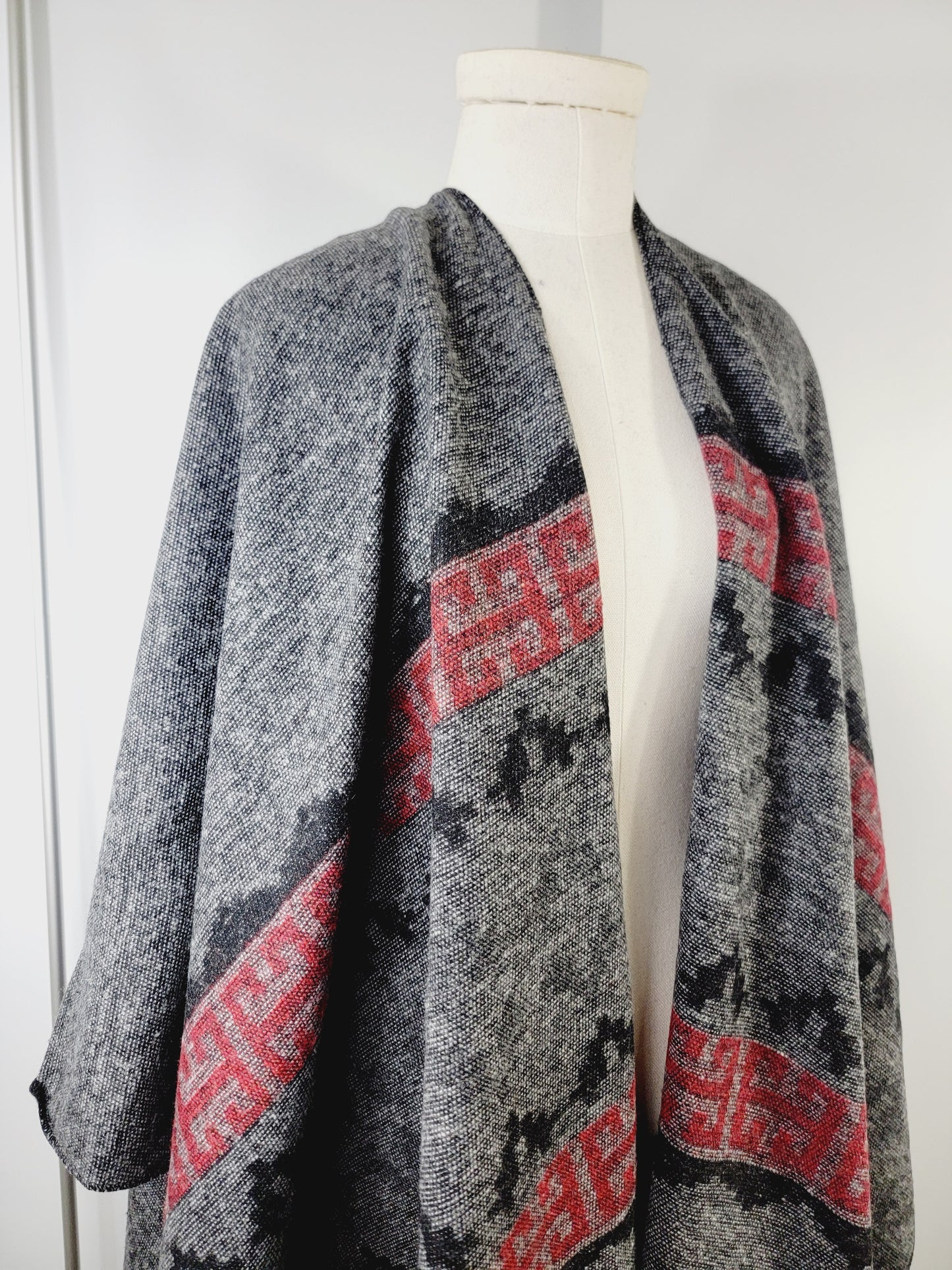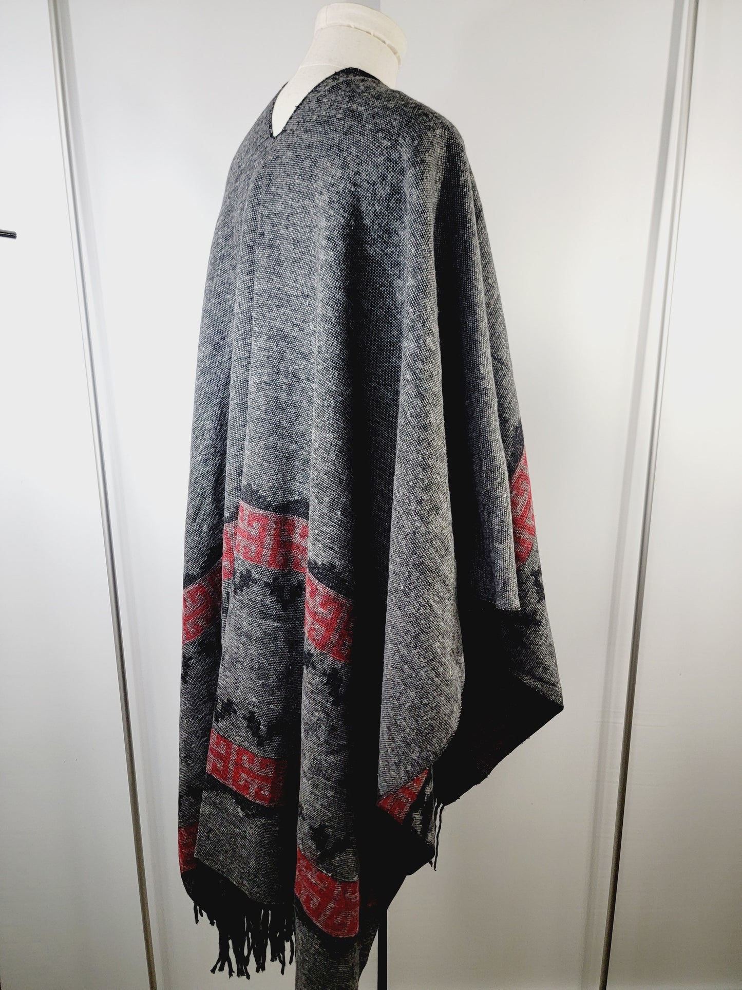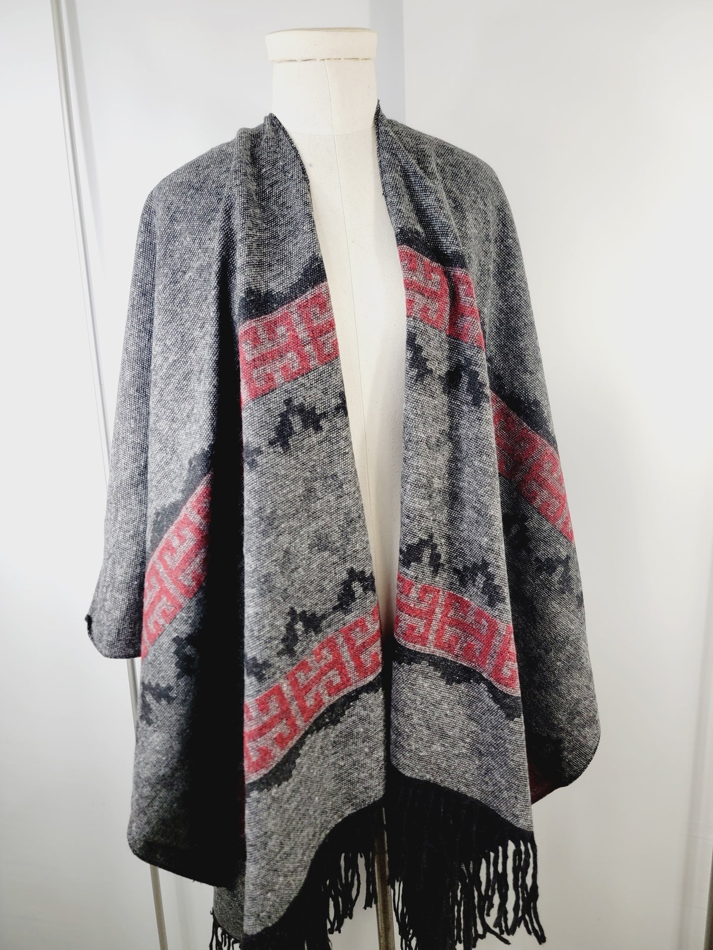 Poncho Shawl, Extra soft - Reversible Gray/Red