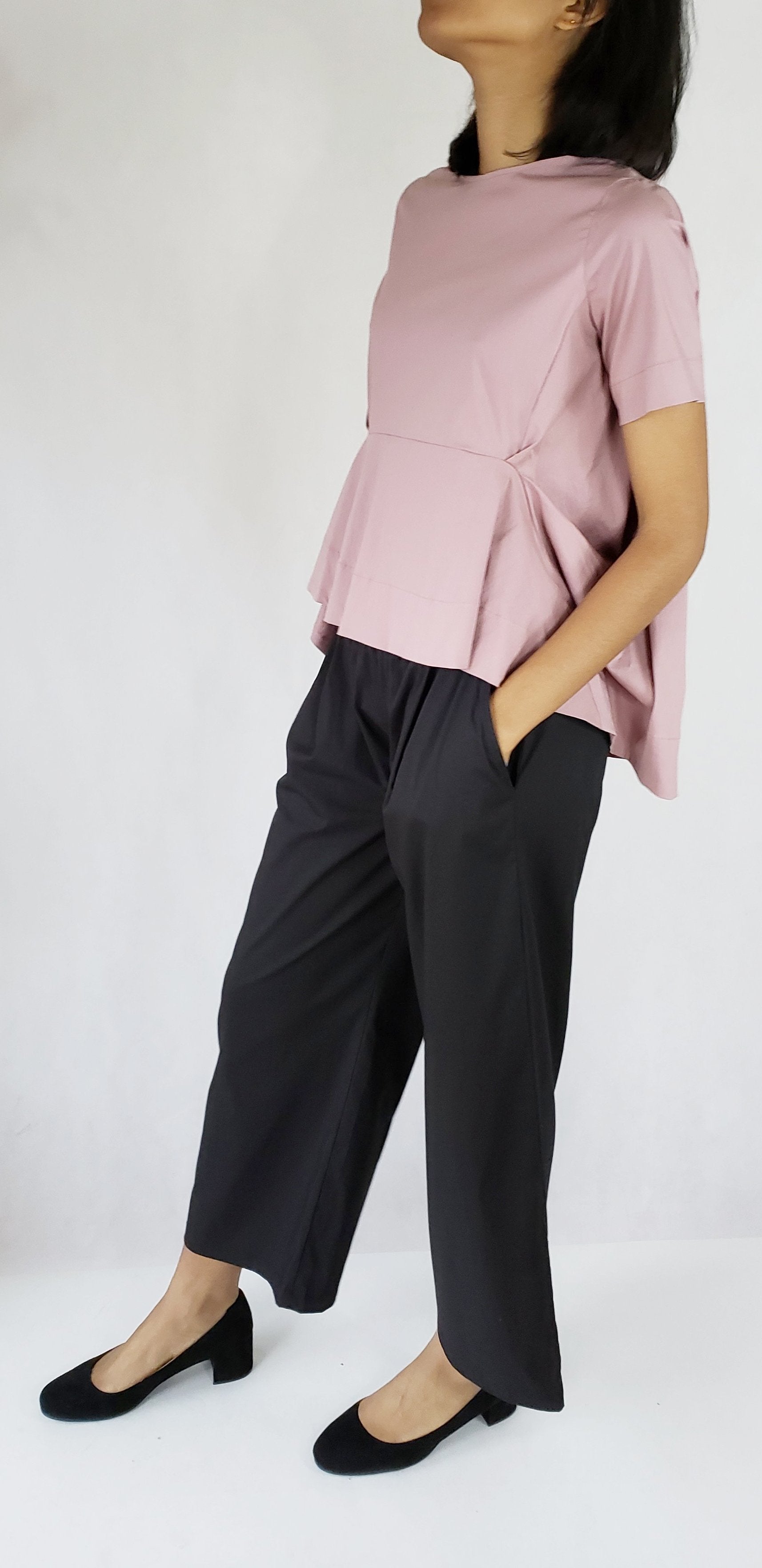 Made from lightweight cotton, this short-sleeved top is designed with a twisted sides detail to create volume. A-line fit, an asymmetric hem finish.