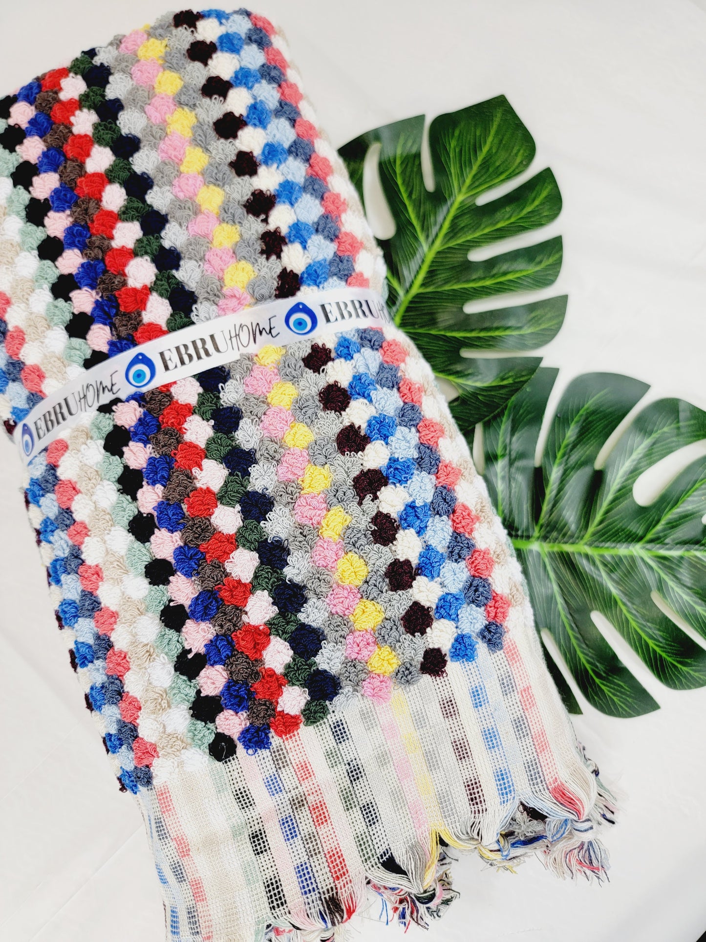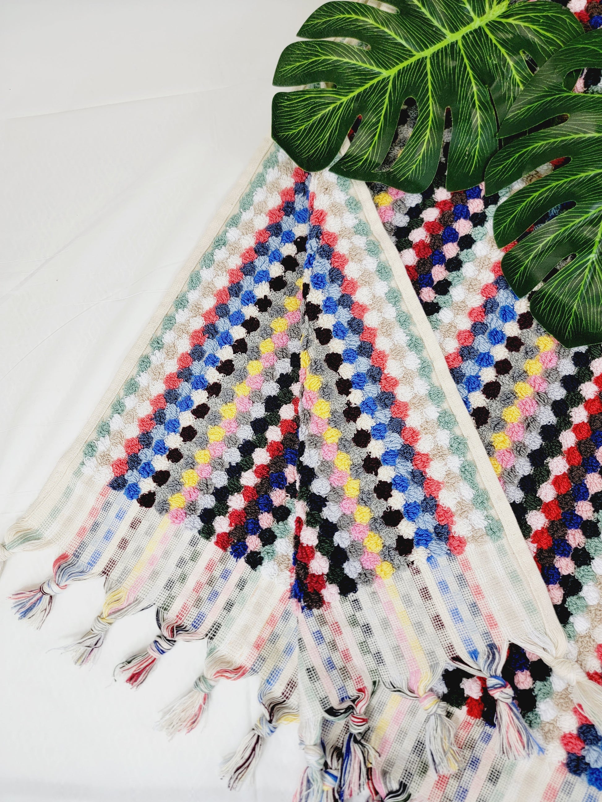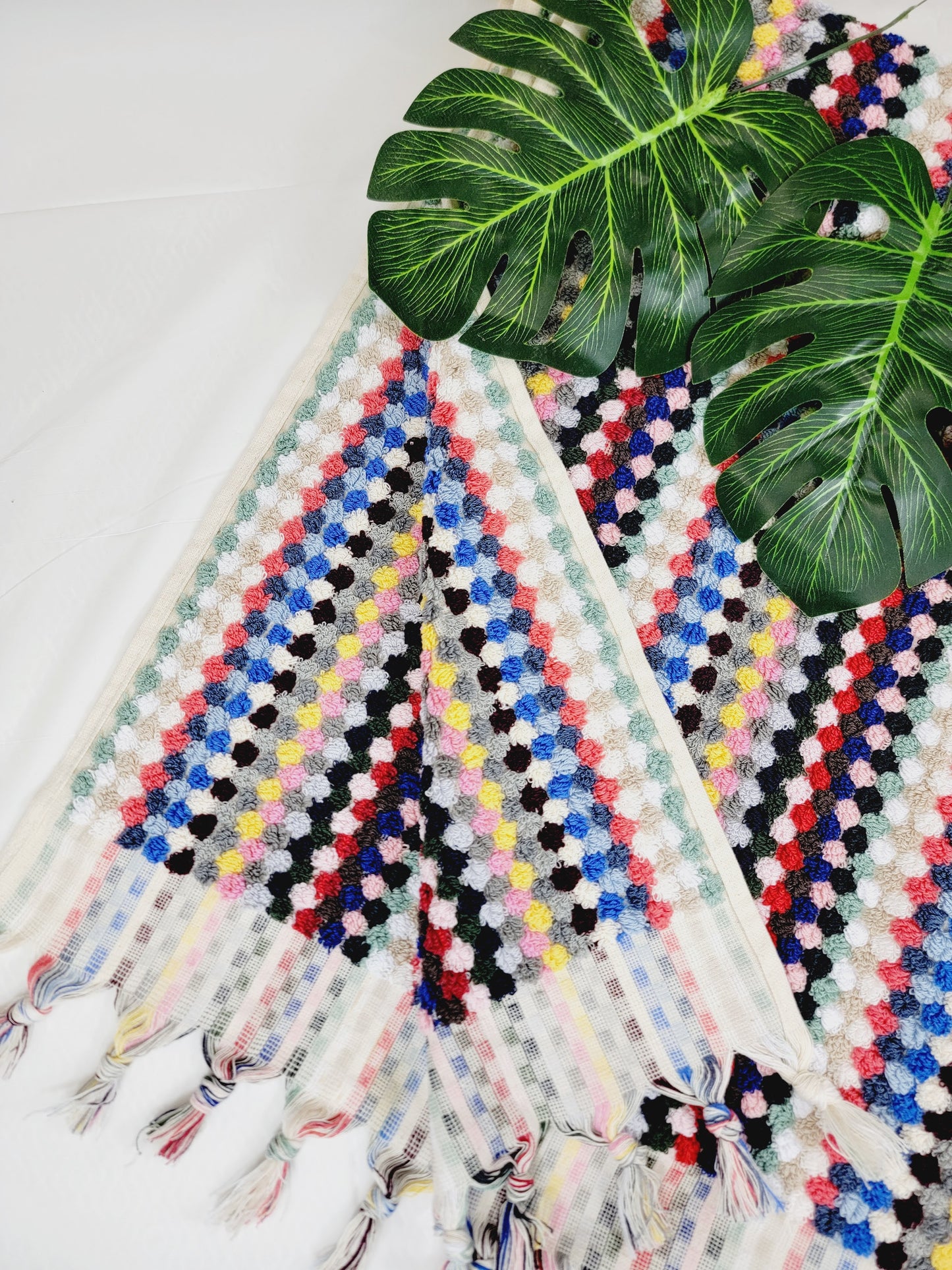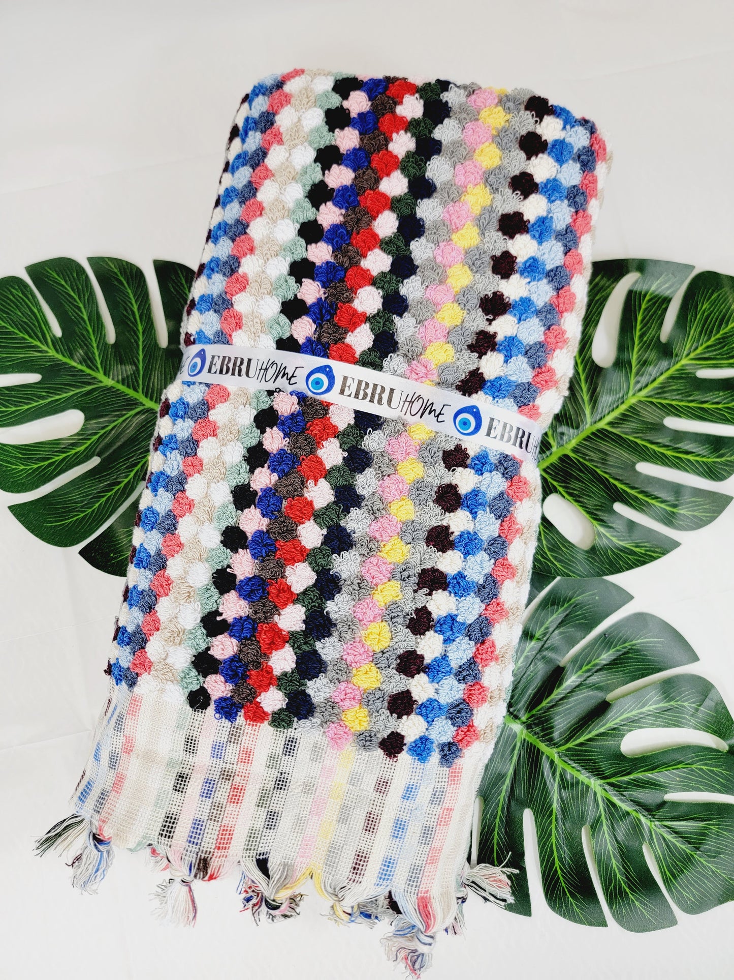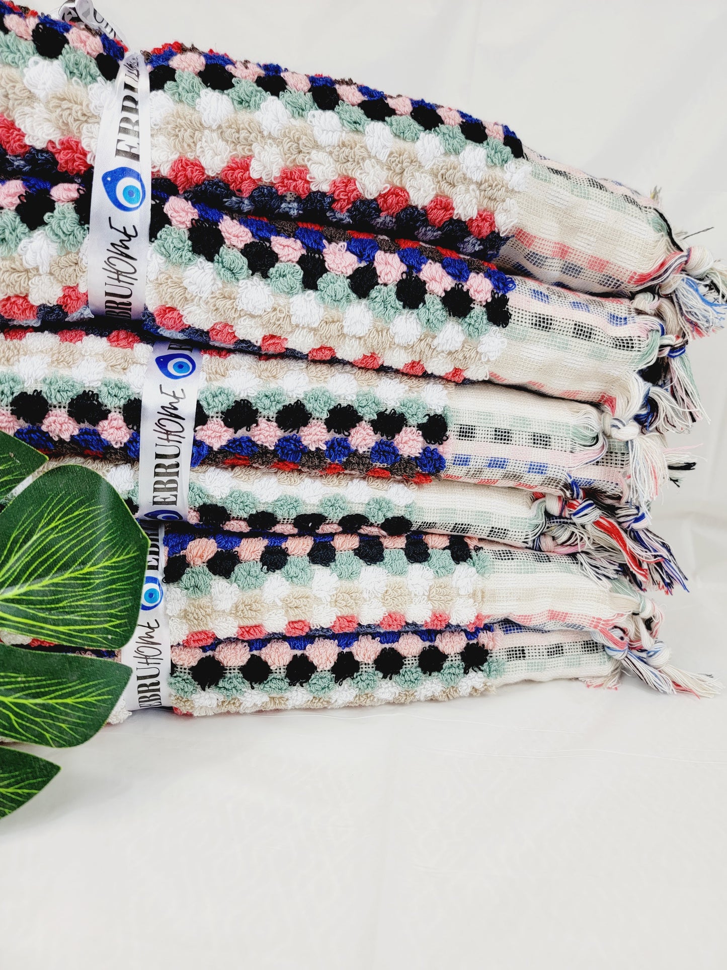 Extra Soft Bath Towels, Organic Turkish Cotton Pom Pom Towels in multi color