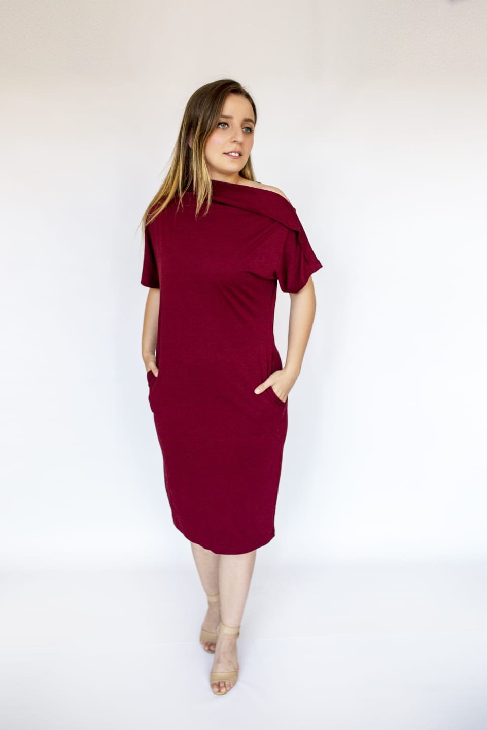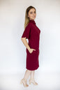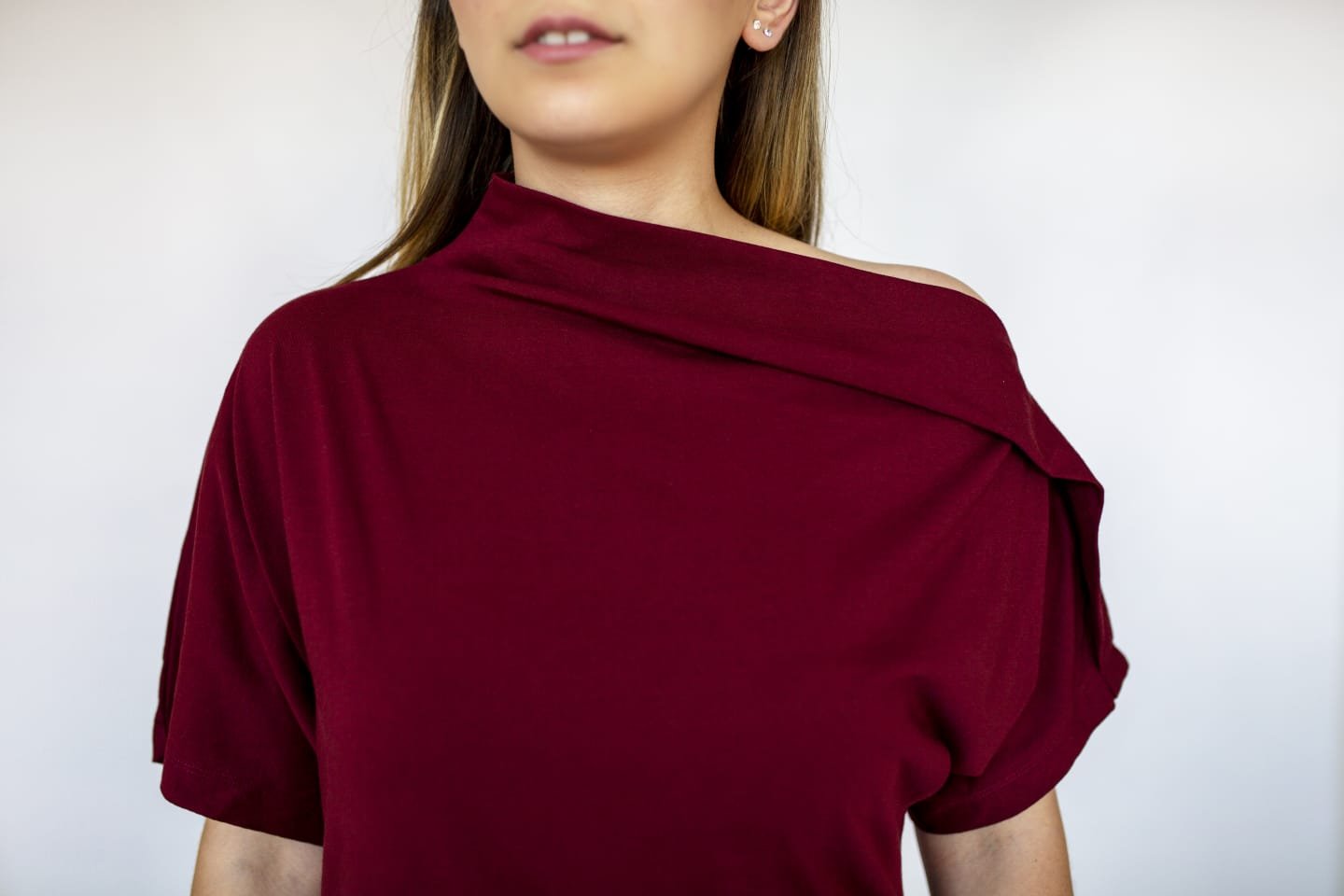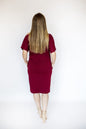 BURGUNDY DRAPPED-NECK JERSEY DRESS - EEBRU