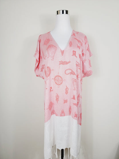 One size FITS ALL! Hand made dress top, You can wear as a top casually or it can be cover up. Dress has different color and tassel ends gives authentic look.