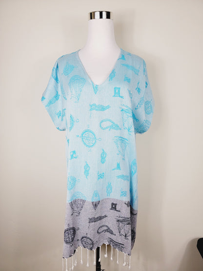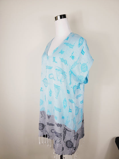 One size FITS ALL! Hand made dress top, You can wear as a top casually or it can be cover up. Dress has different color and tassel ends gives authentic look.