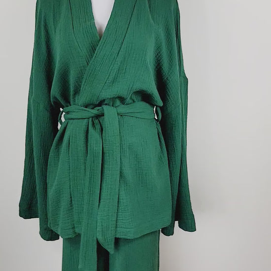 Breathable Muslin Set for Women, Versatile Everyday Wear , Green