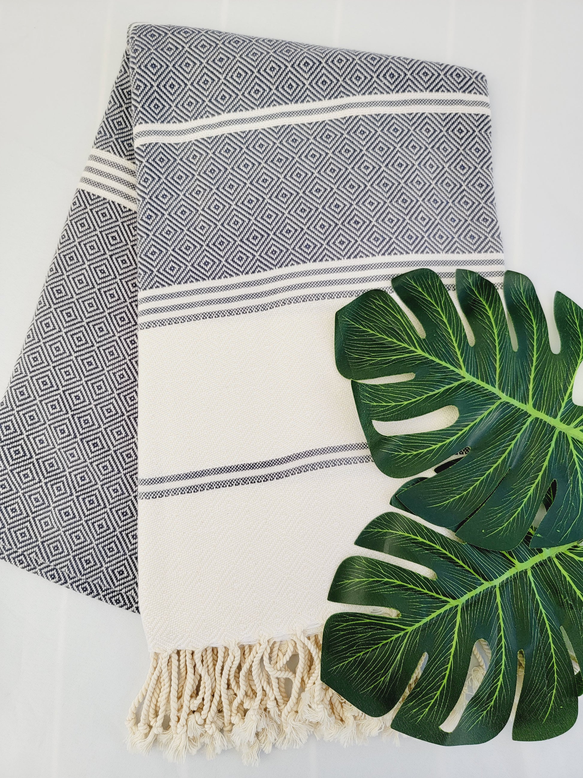 Toallas turcas de baño/playa-Toalla fina de secado rápido fácil de llevar-Azul marino