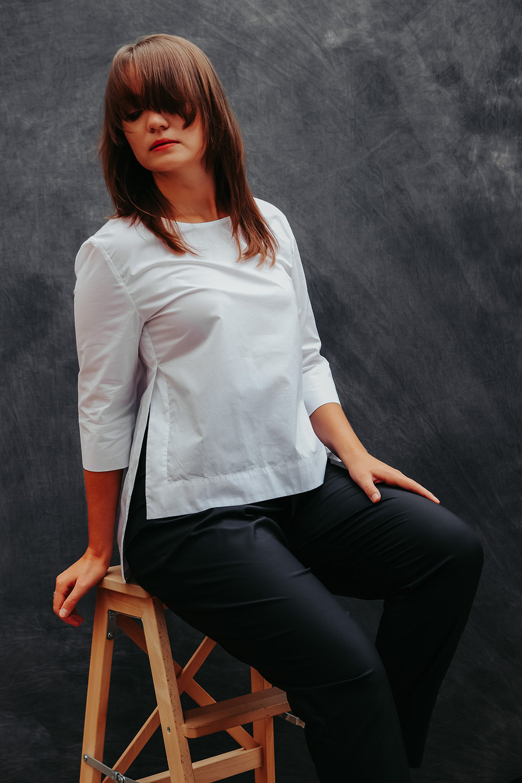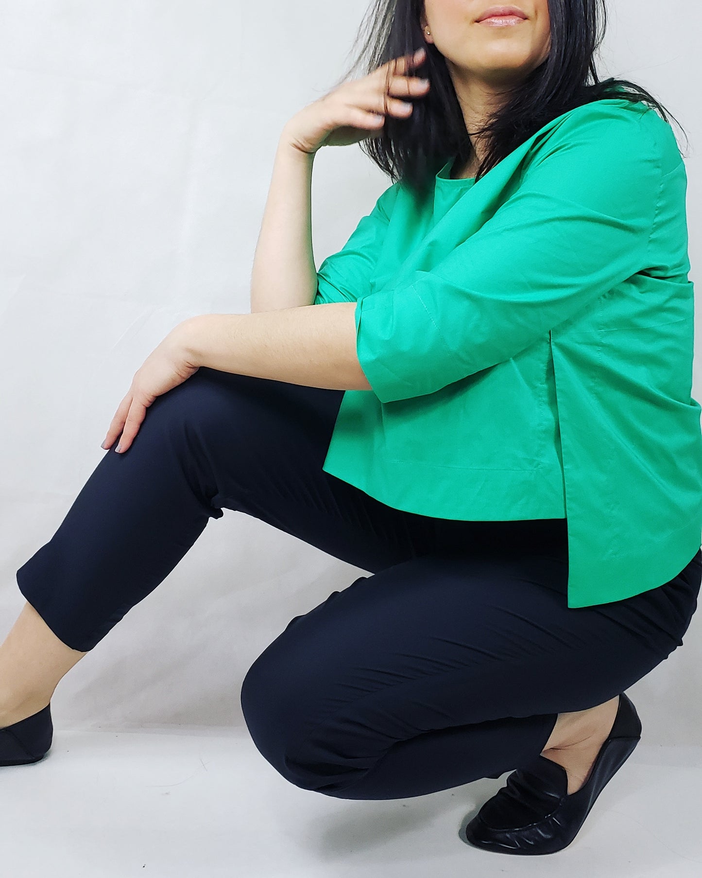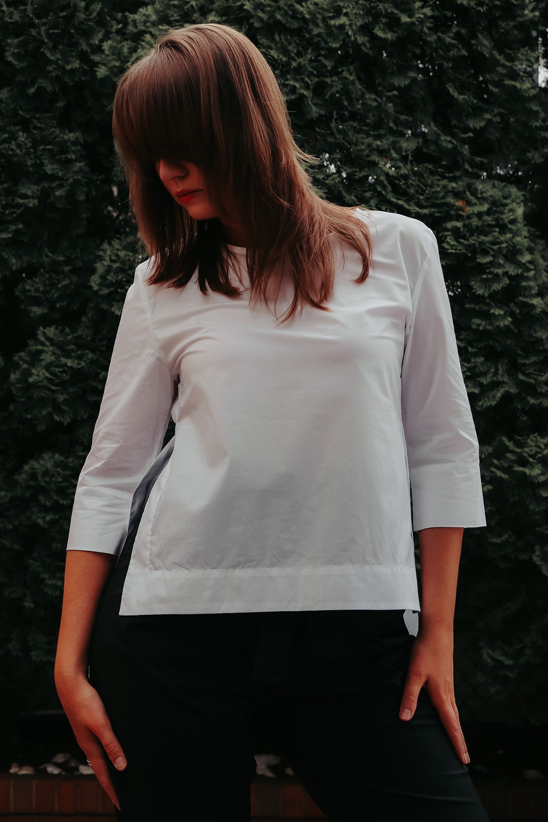 Un estilo clásico actualizado con un ajuste regular que se ensancha hacia el dobladillo, esta blusa está confeccionada con algodón fresco. Estilo delantero corto con abertura lateral. Tiene una abertura, puños remangados en las mangas ¾ y un dobladillo de corte limpio.