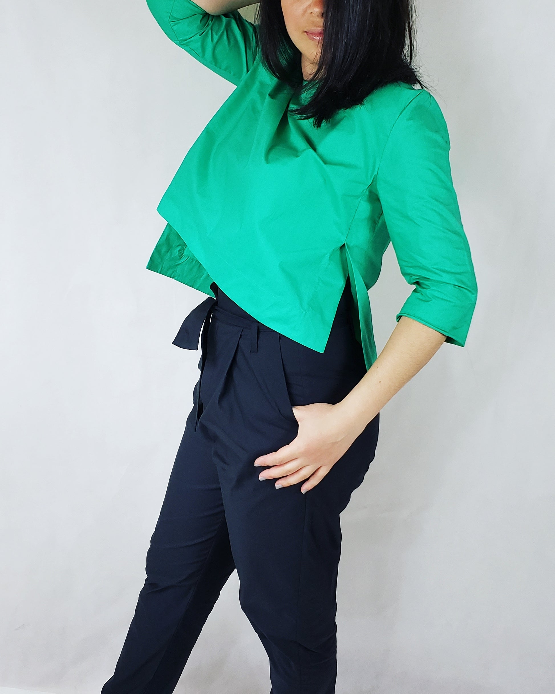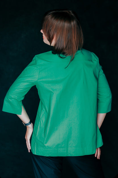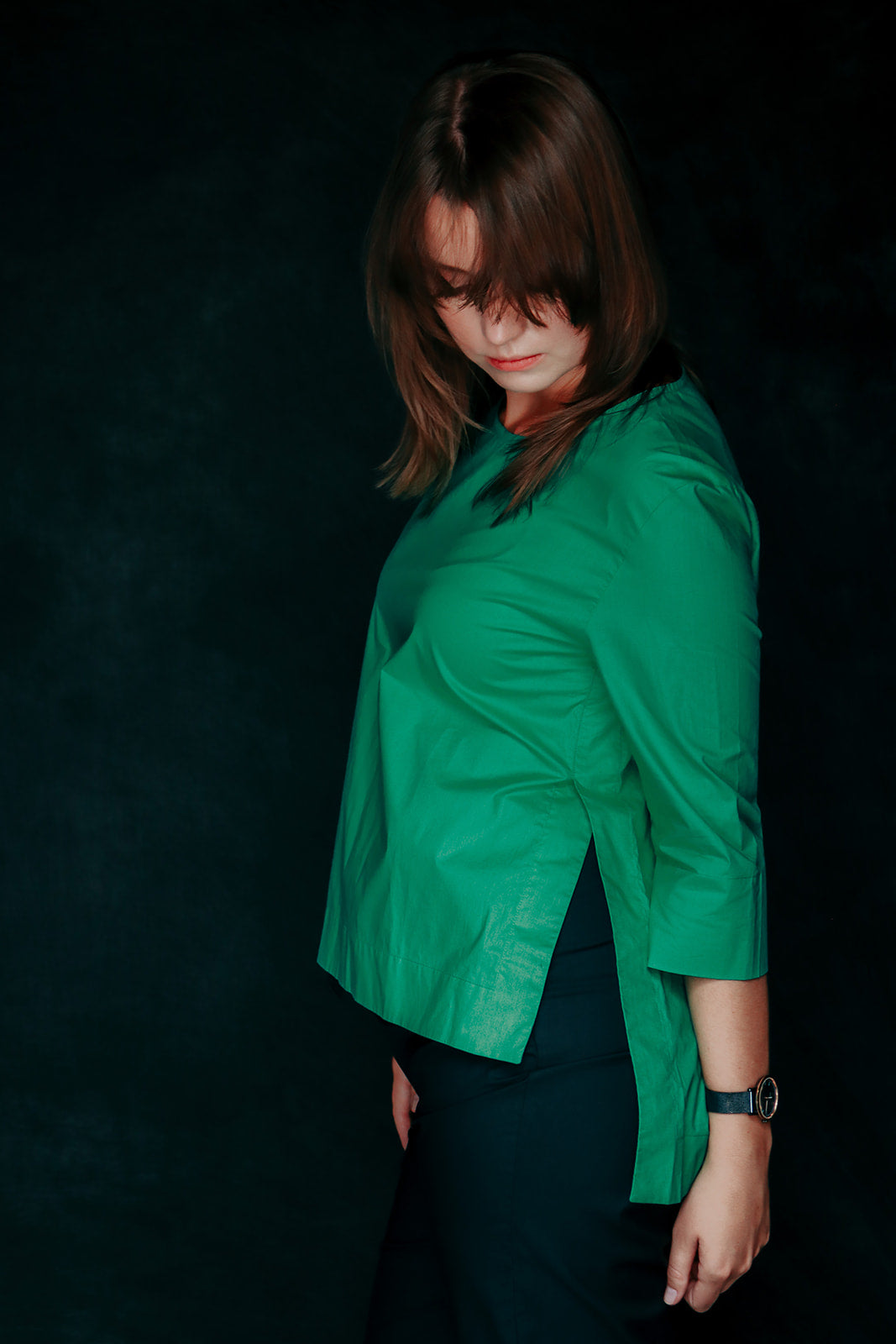 Un estilo clásico actualizado con un ajuste regular que se ensancha hacia el dobladillo, esta blusa está confeccionada con algodón fresco. Estilo delantero corto con abertura lateral. Tiene una abertura, puños remangados en las mangas ¾ y un dobladillo de corte limpio.
