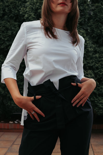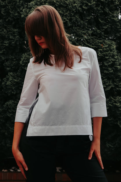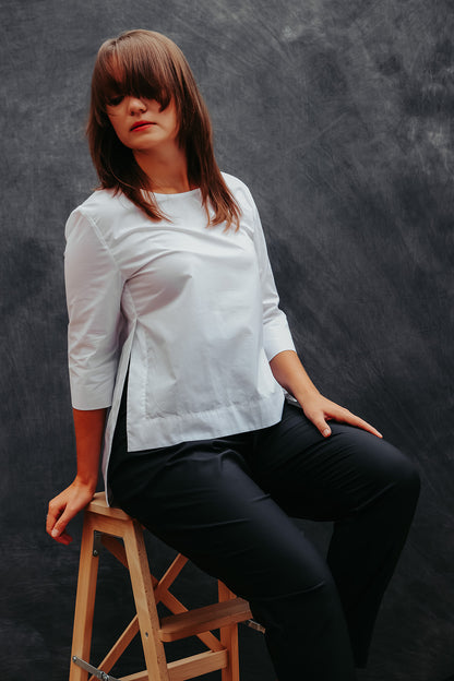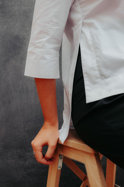 Camisa blanca con aberturas laterales mangas 3/4 algodón premium