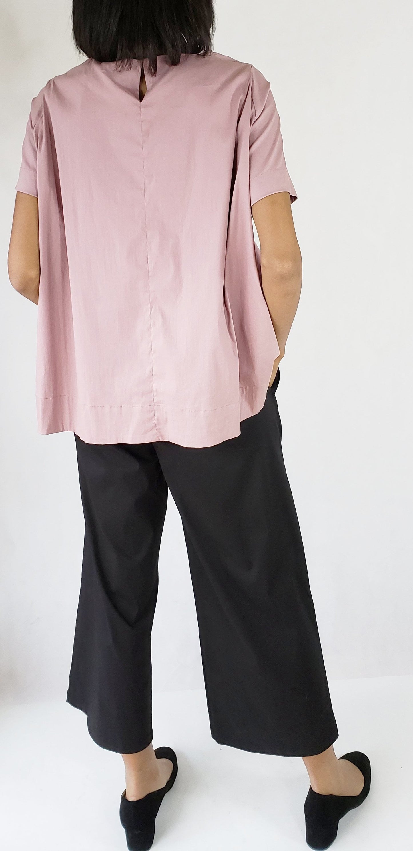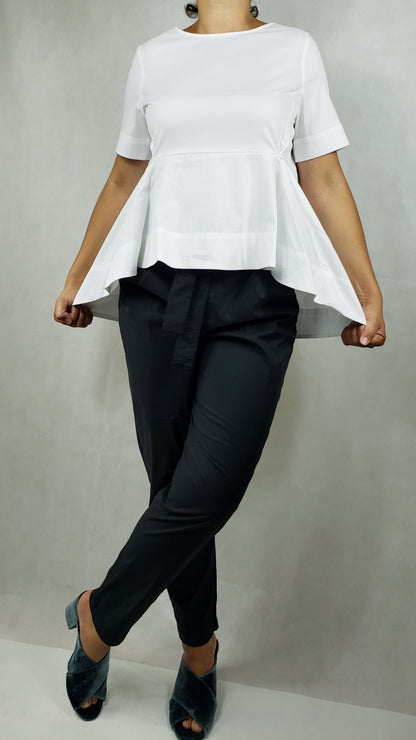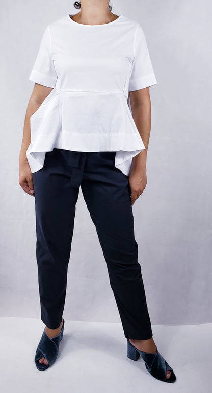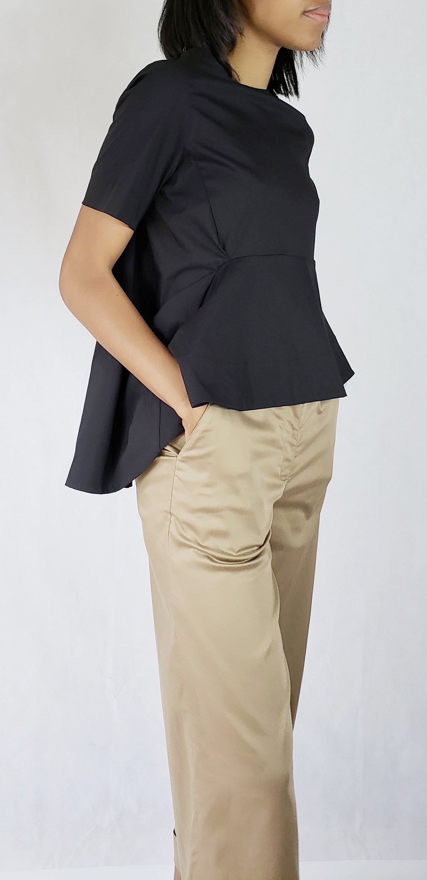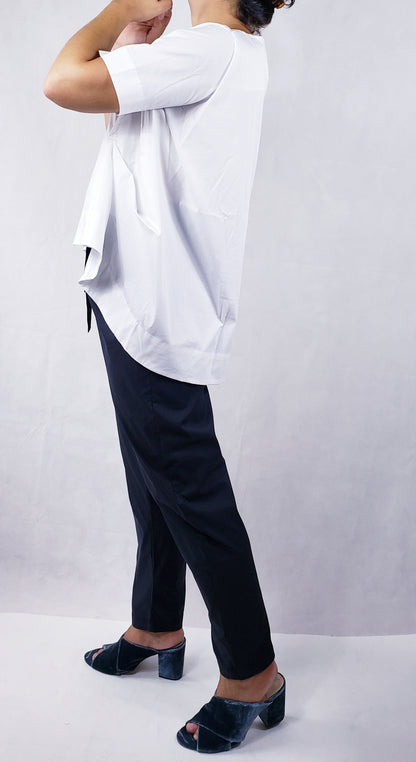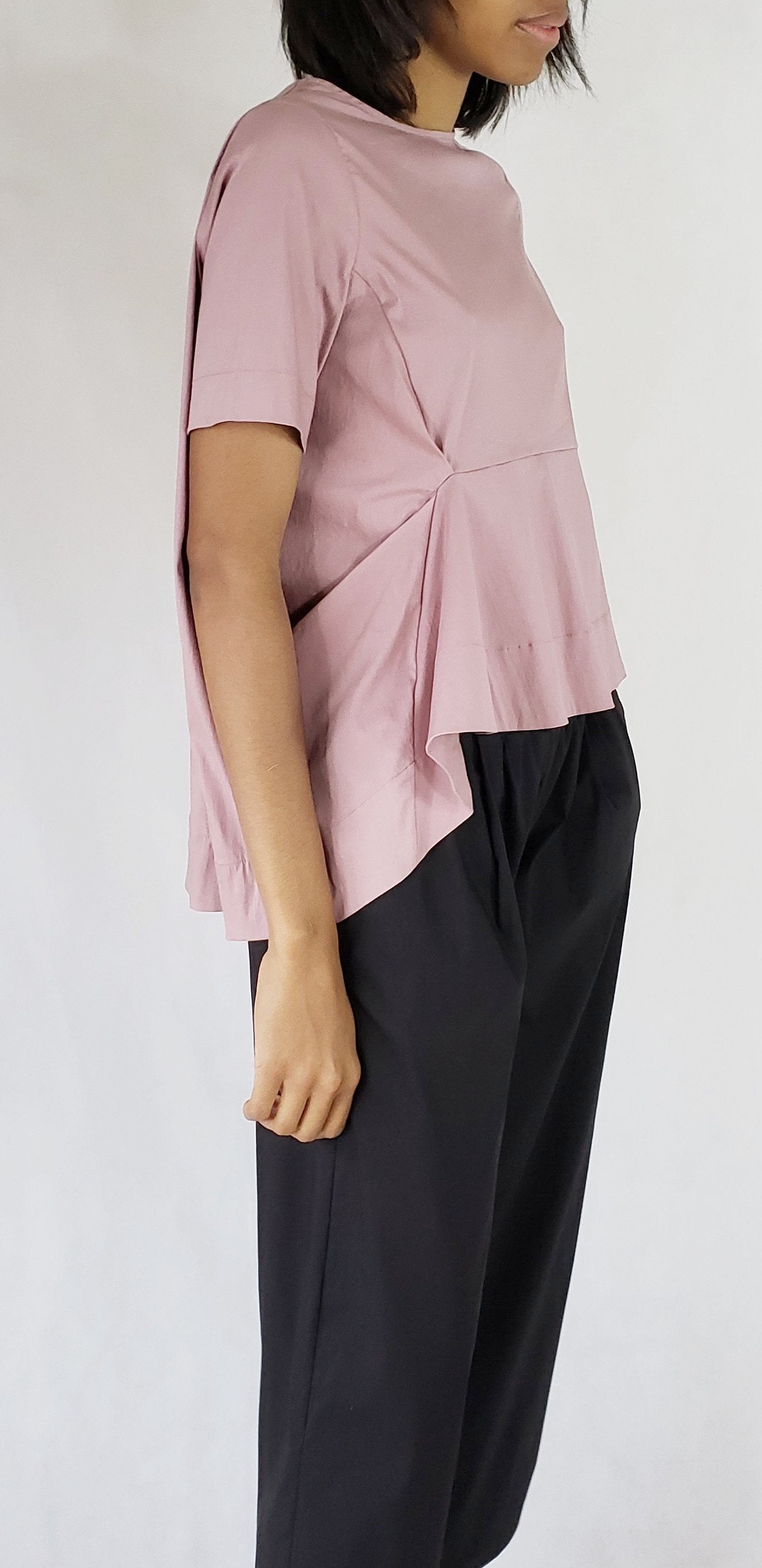 Confeccionada con algodón ligero, esta camiseta de manga corta está diseñada con un detalle de lados retorcidos para crear volumen. Corte evasé, acabado de dobladillo asimétrico.