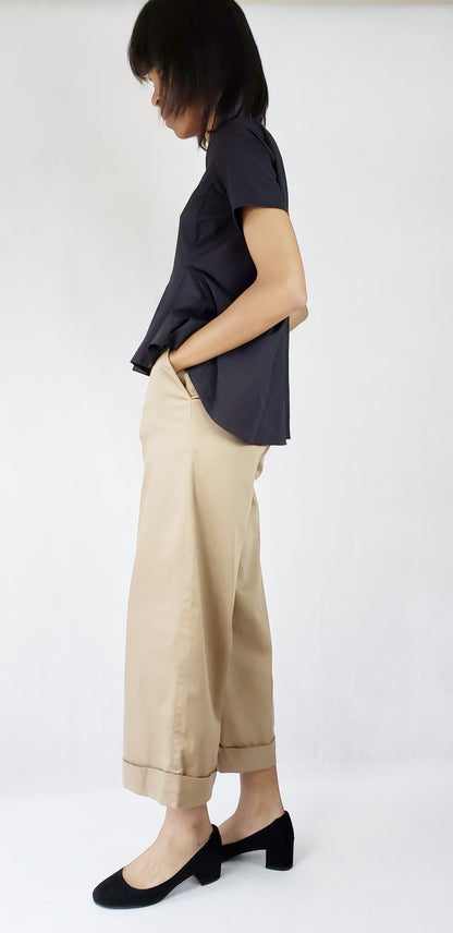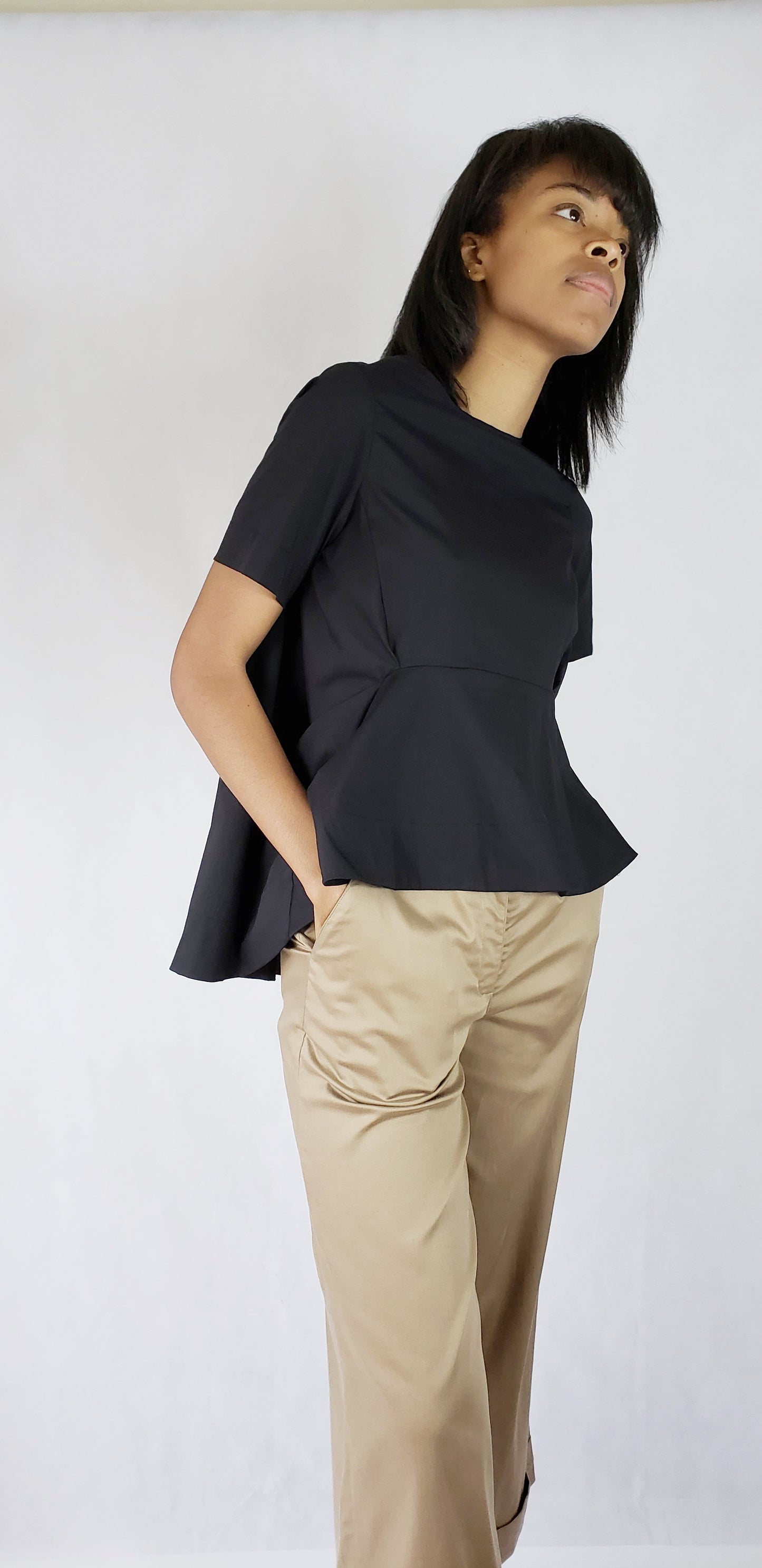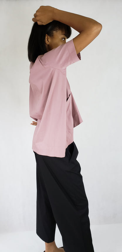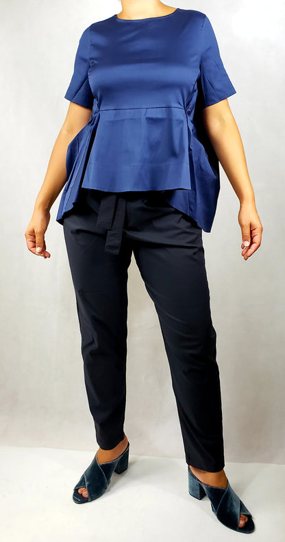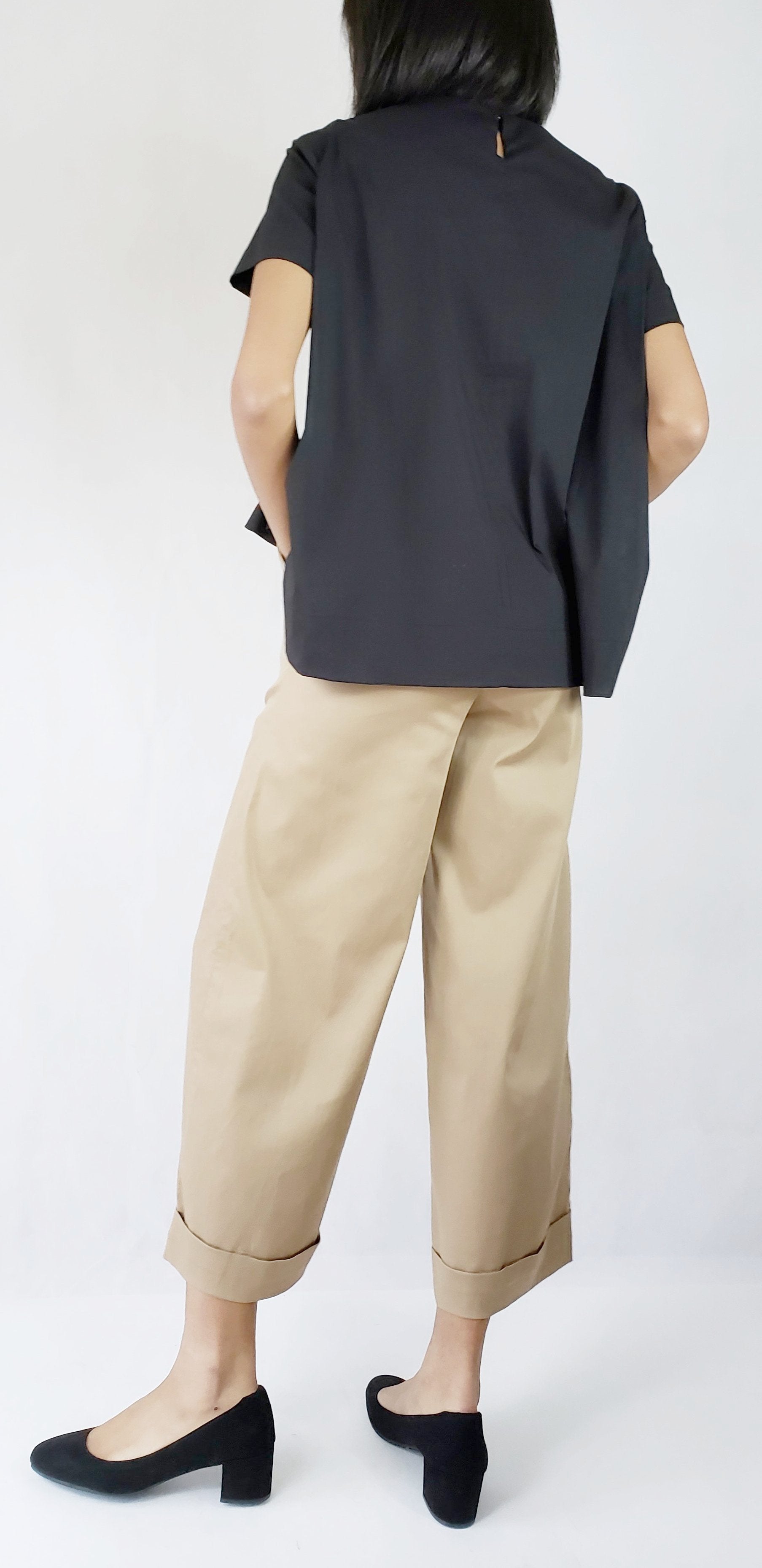 Confeccionada con algodón ligero, esta camiseta de manga corta está diseñada con un detalle de lados retorcidos para crear volumen. Corte evasé, acabado de dobladillo asimétrico.