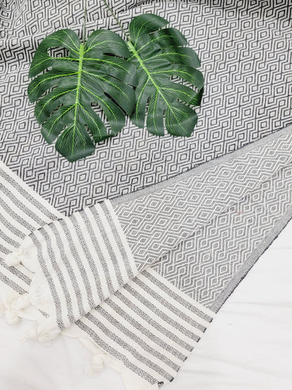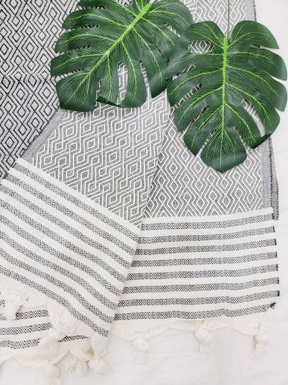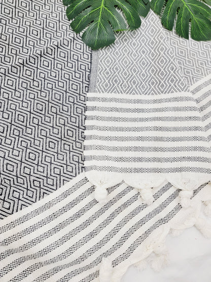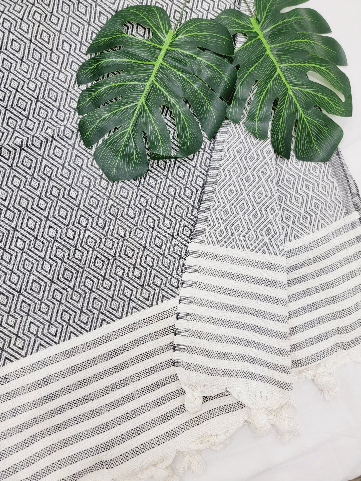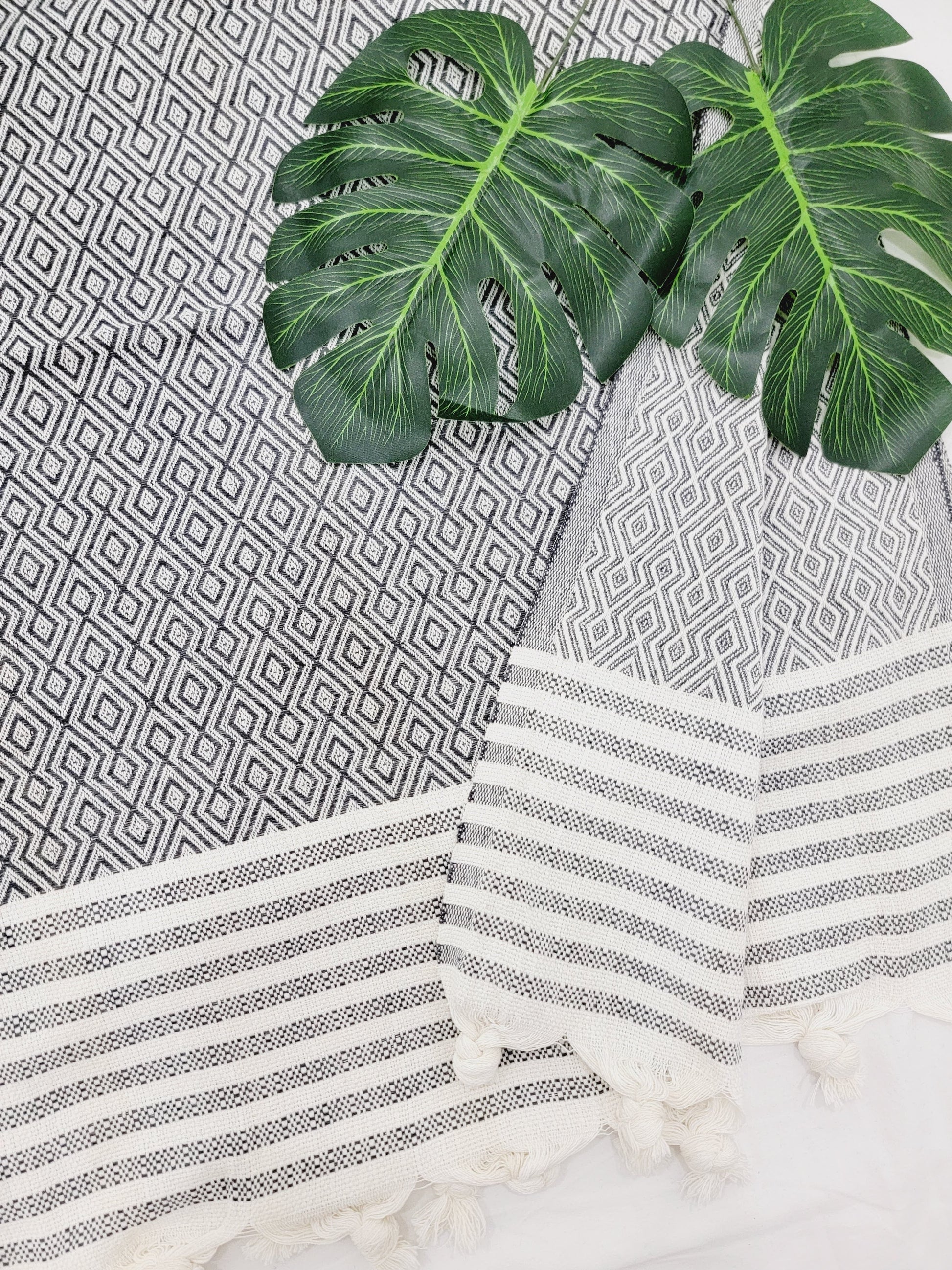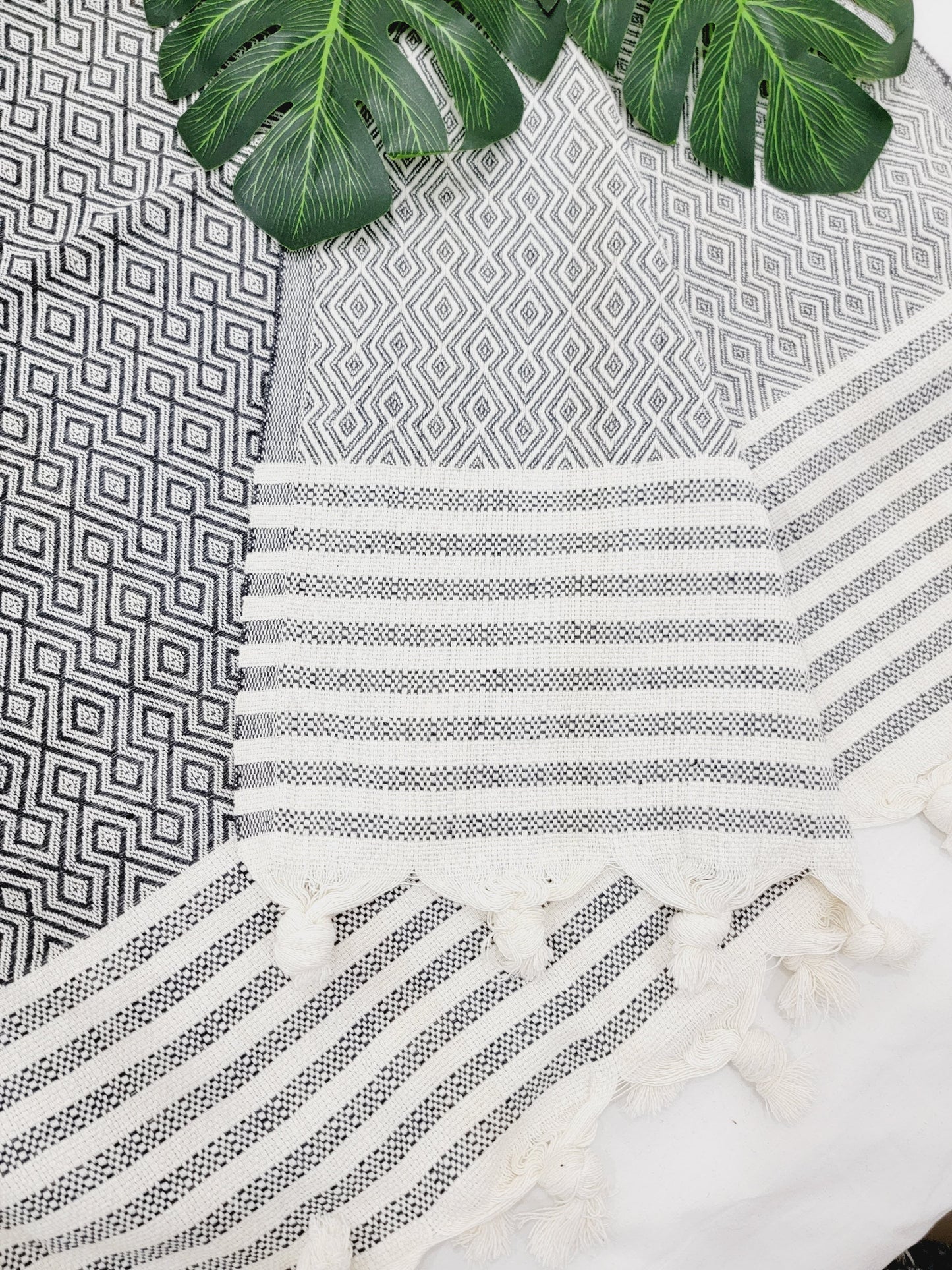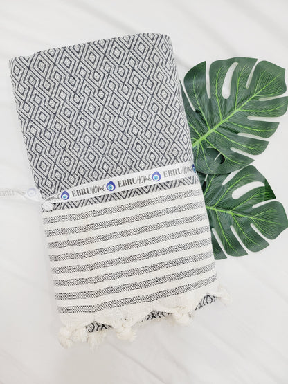 Our newest product are these woven cotton blankets, featuring our popular Turkish Towel designs. With measurements of 70"x 118" Inches / 180x305 cm, these blankets serve as both a bedspread and picnic companion. Constructed from 100% Premium Turkish Cotton, they are both sturdy and lightweight, making them perfect for daily use and outdoor activities alike. Elevate your bedding or outdoor gear with these durable blankets.