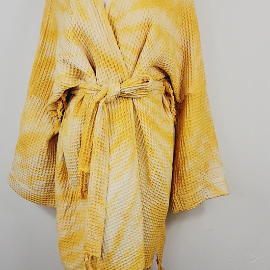Crafted from 100% cotton with a breathable honeycomb waffle weave, this unisex robe is lightweight, soft, and designed for everyday comfort. The woven texture allows airflow while maintaining a relaxed structure, making it ideal for warm climates and year-round wear.