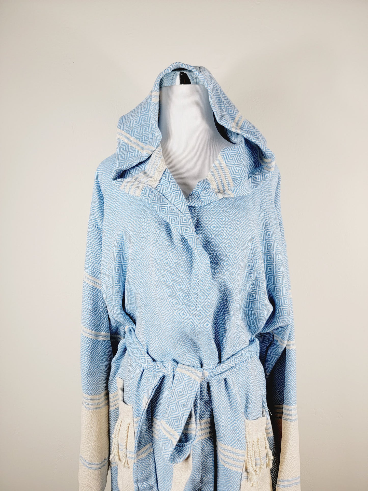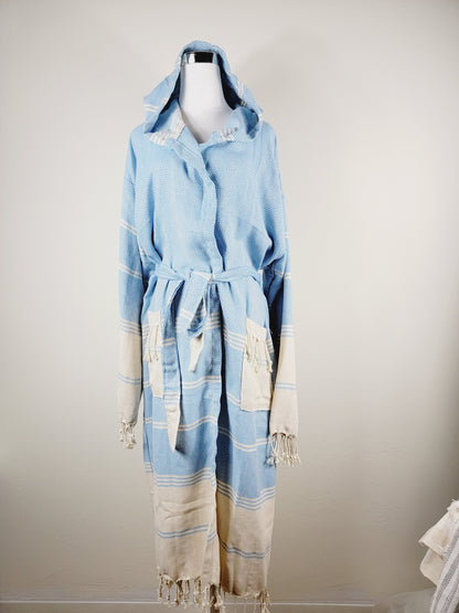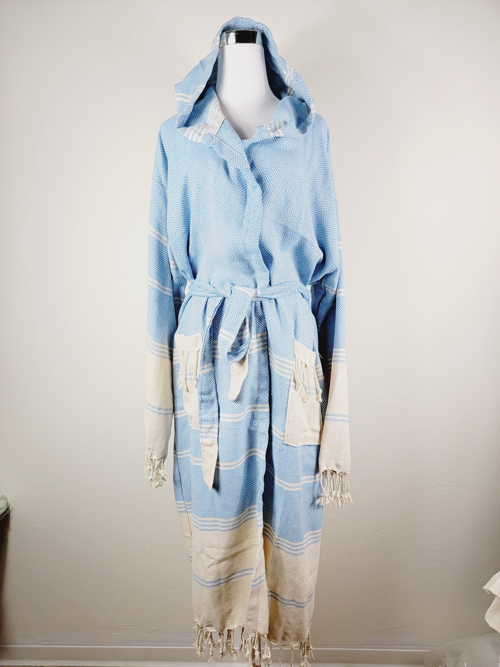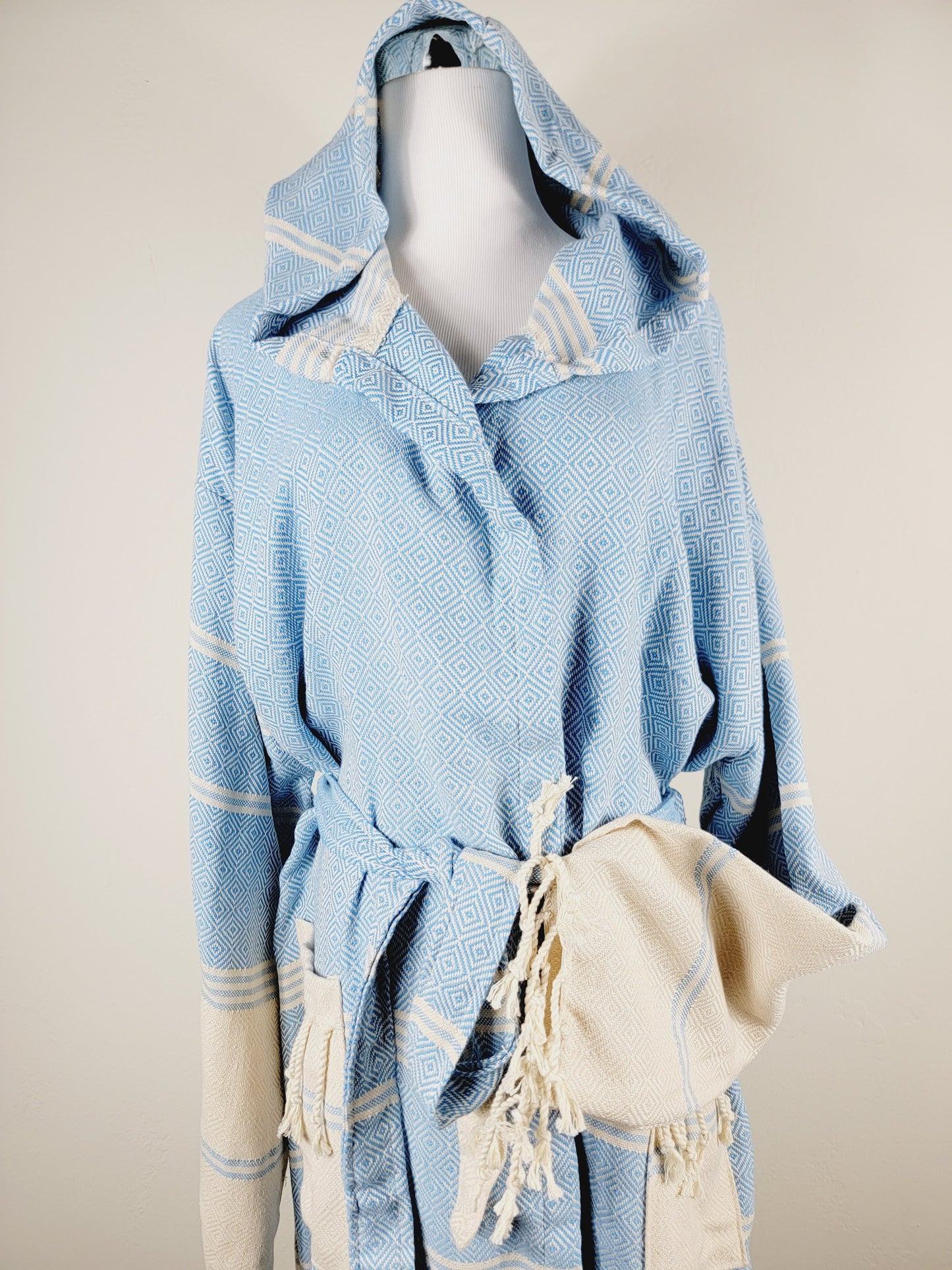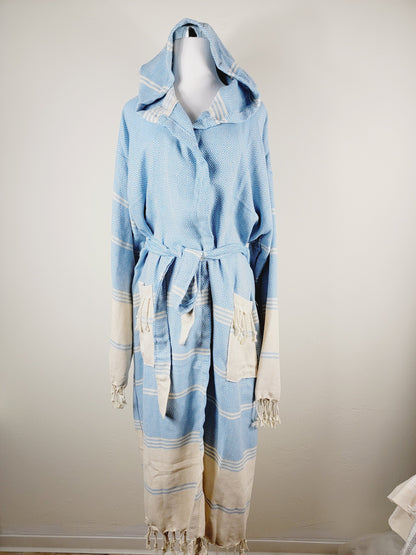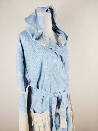 Unisex Robe, Beach or spa Robe with pockets - Light Blue