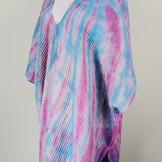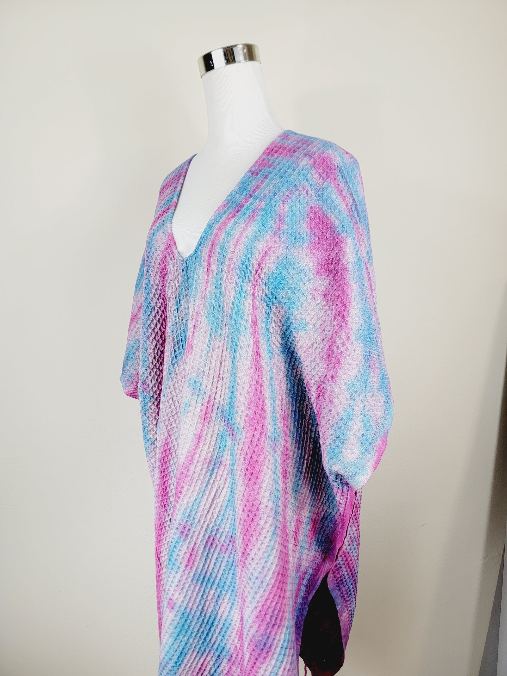 Toalla de baño, Toalla de gofre, Toalla de playa turca, Tie dye hecho a manoDYEWAFFLE-BLUE-PINK
