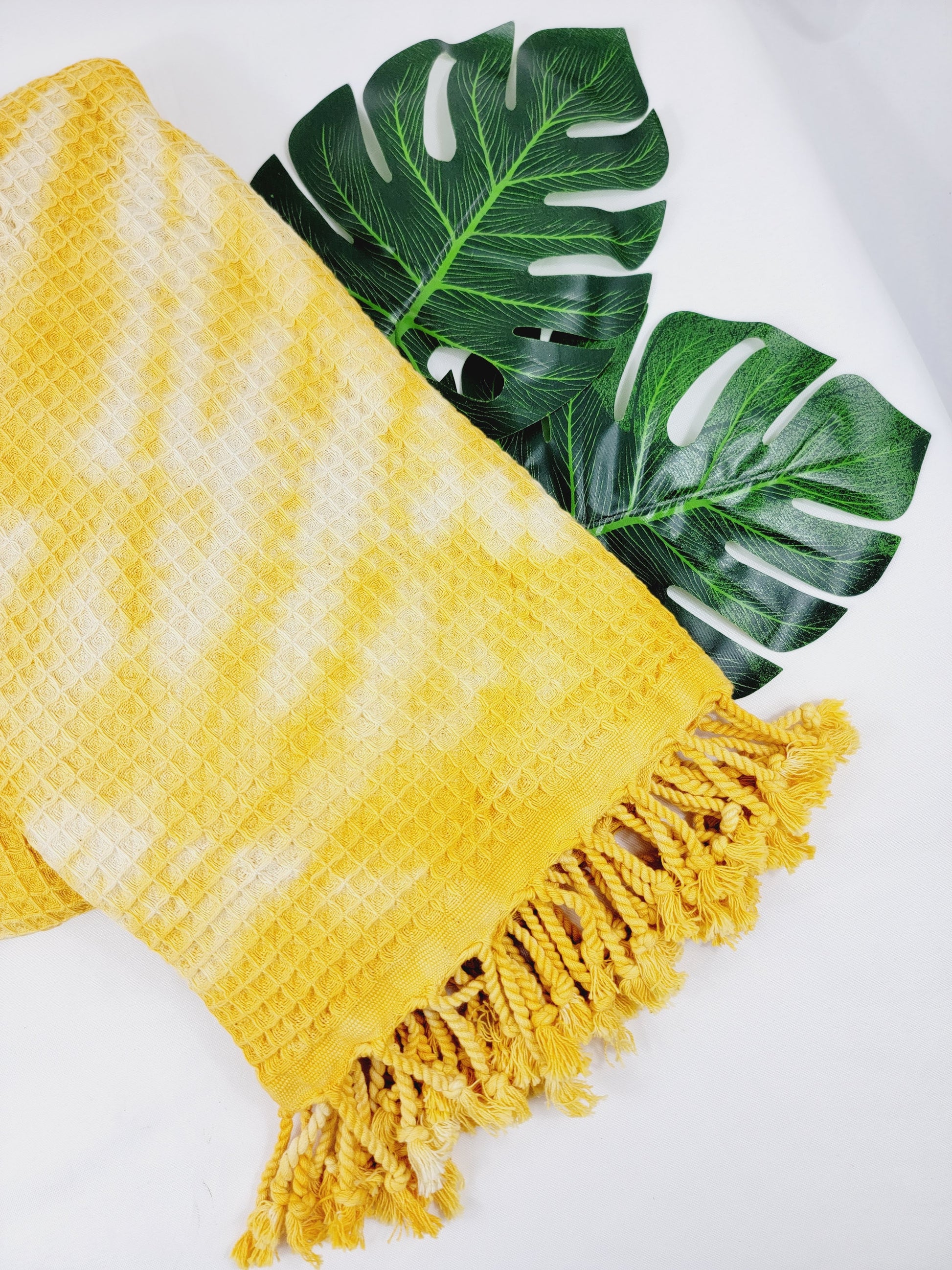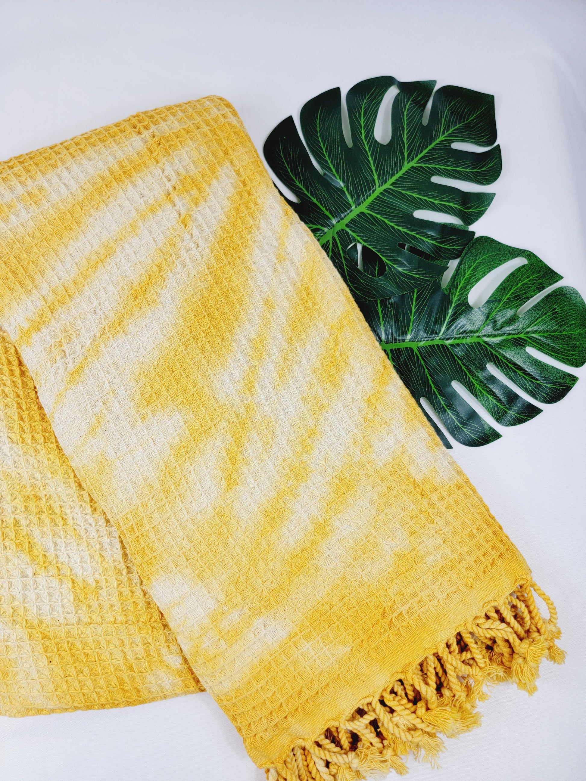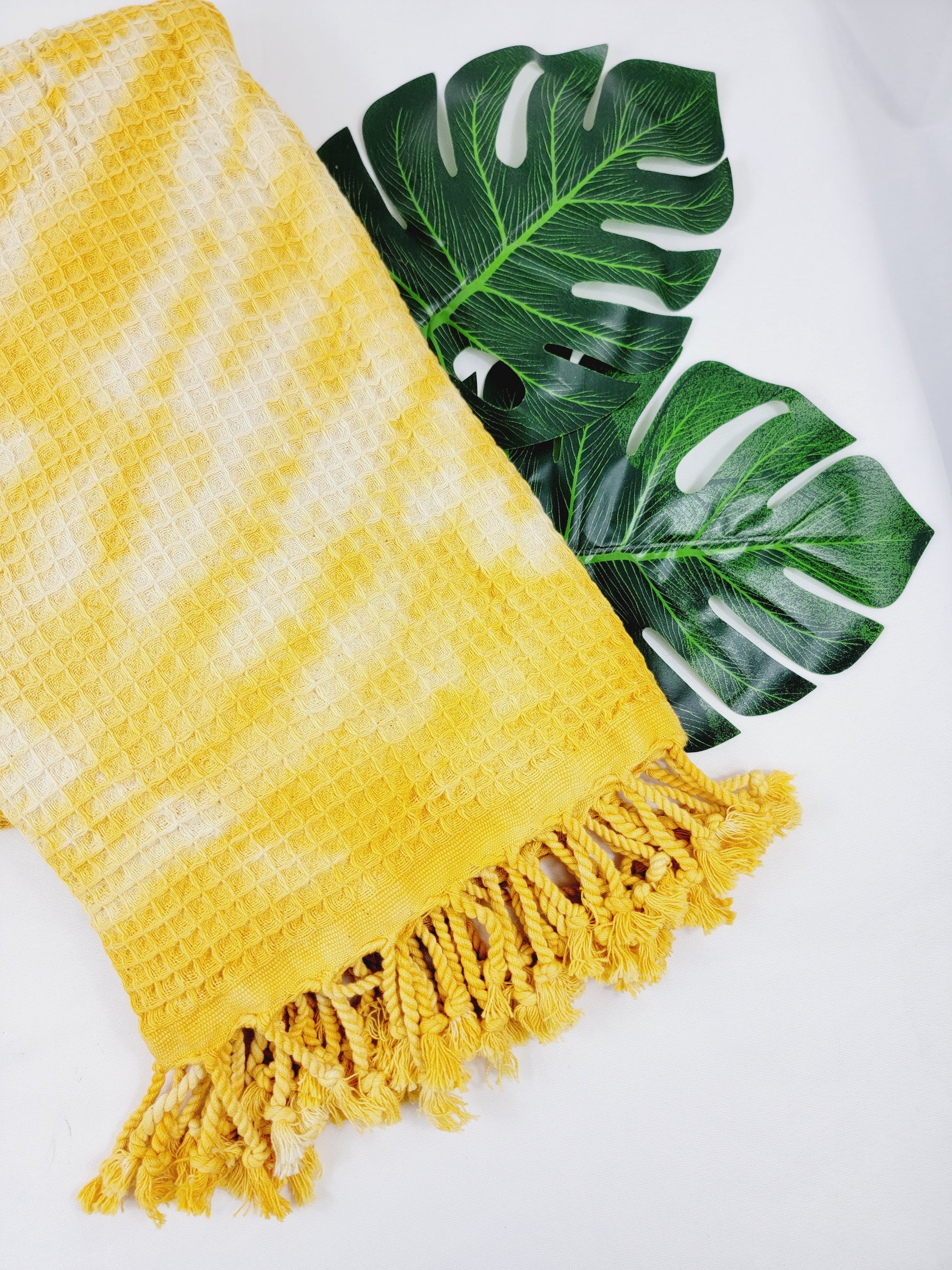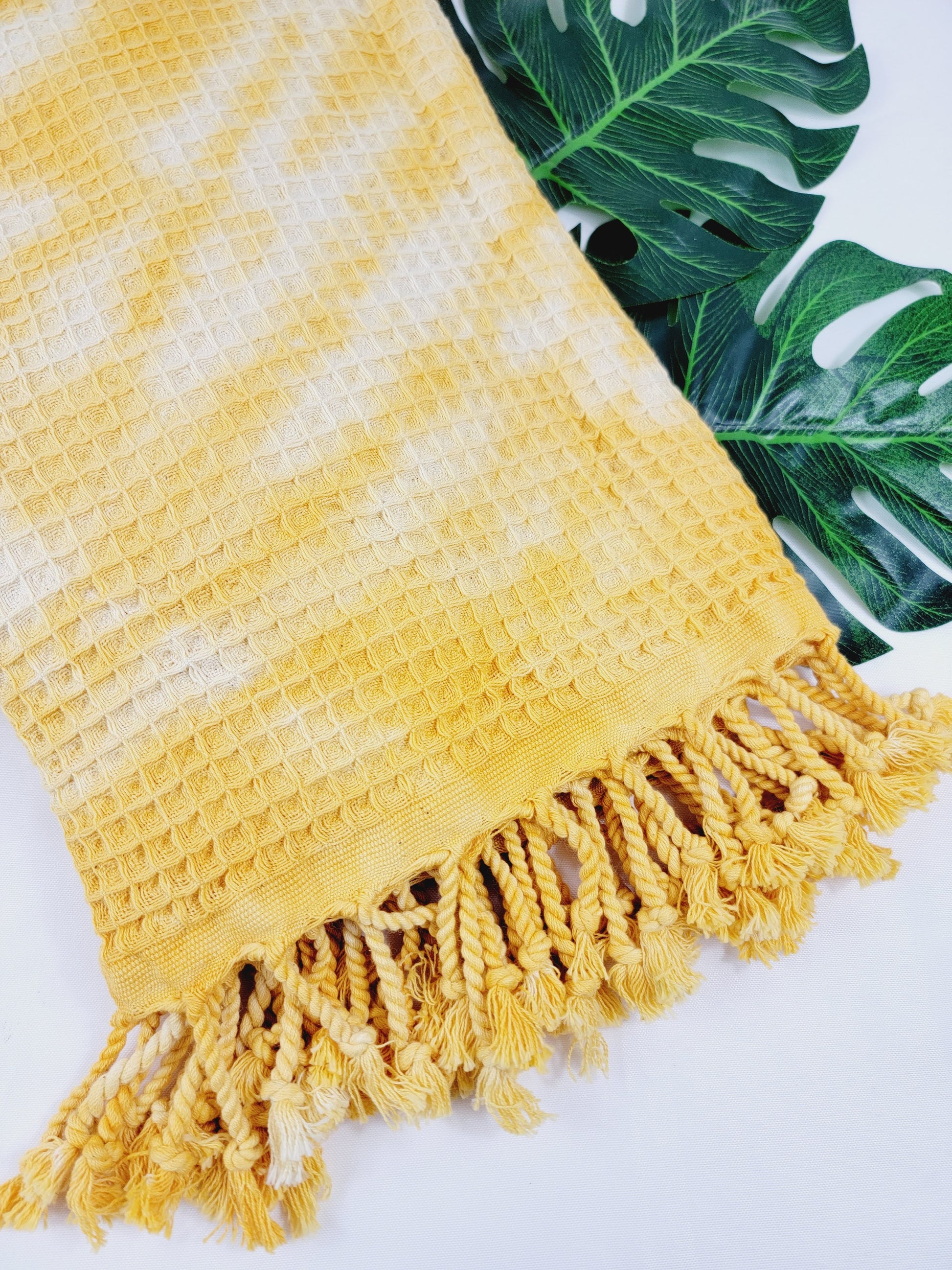 Toalla de baño, Toalla de gofre, Toalla de playa turca, Tie dye hecho a manoDYEWAFFLE-YELLOW
