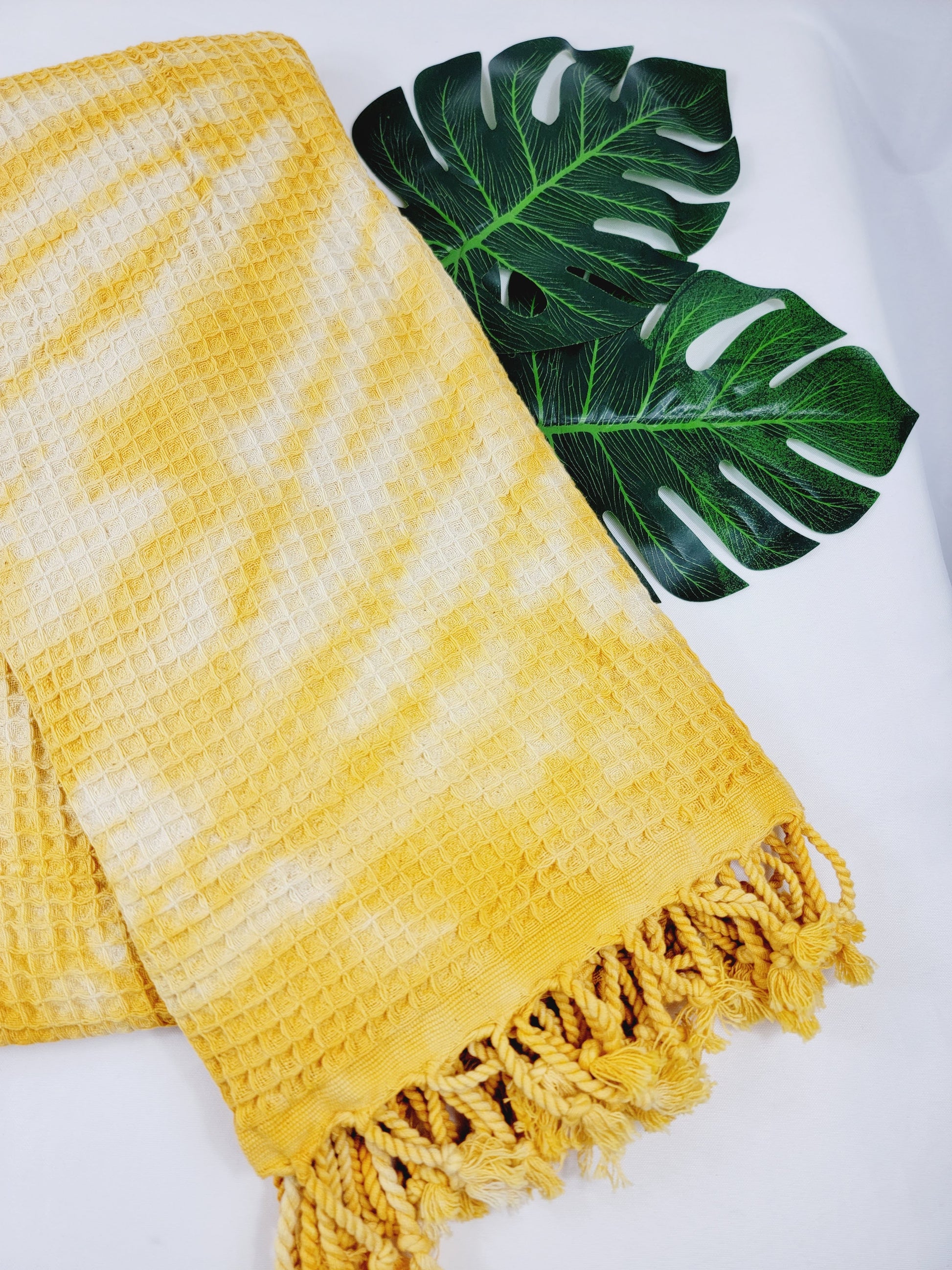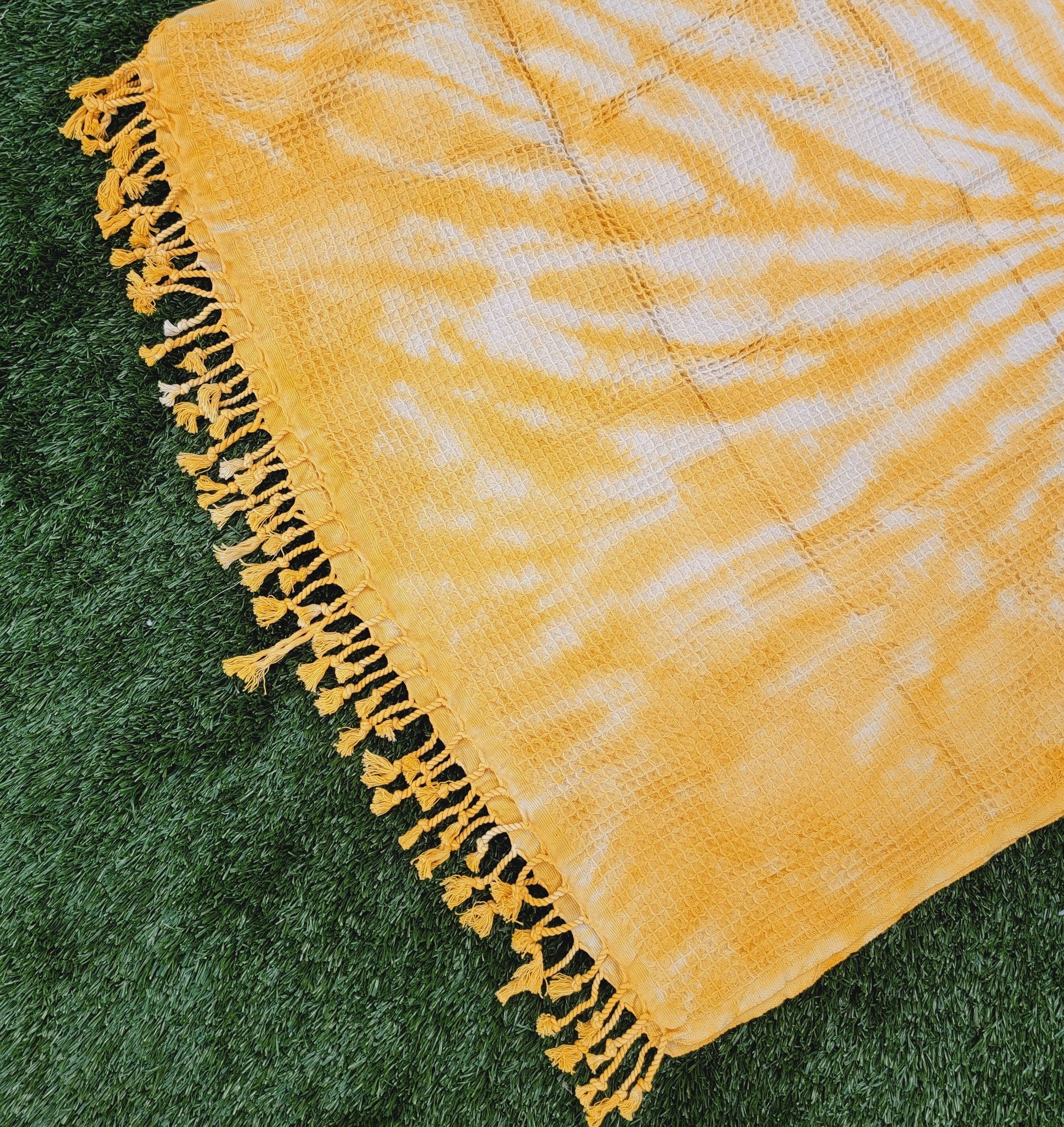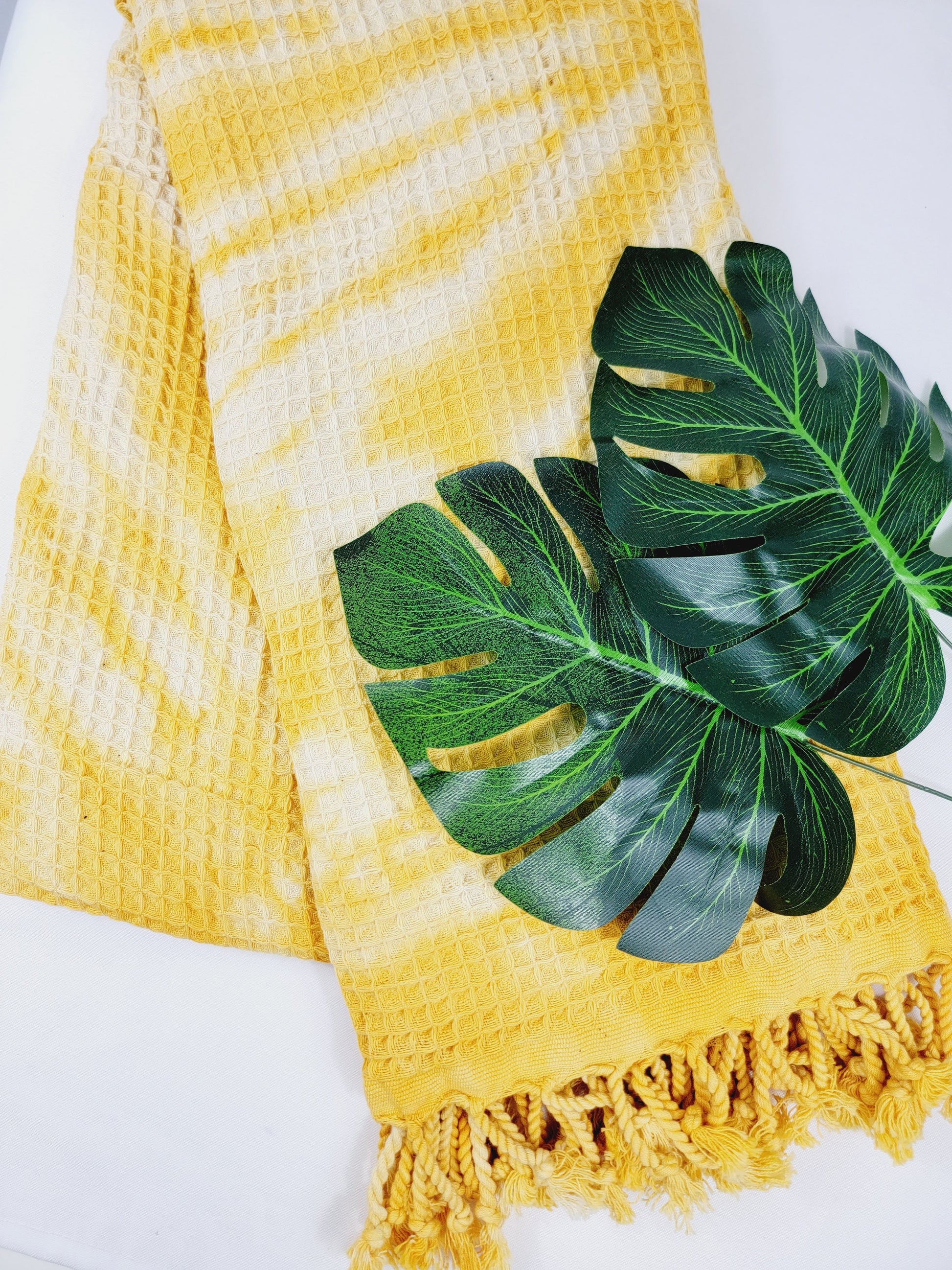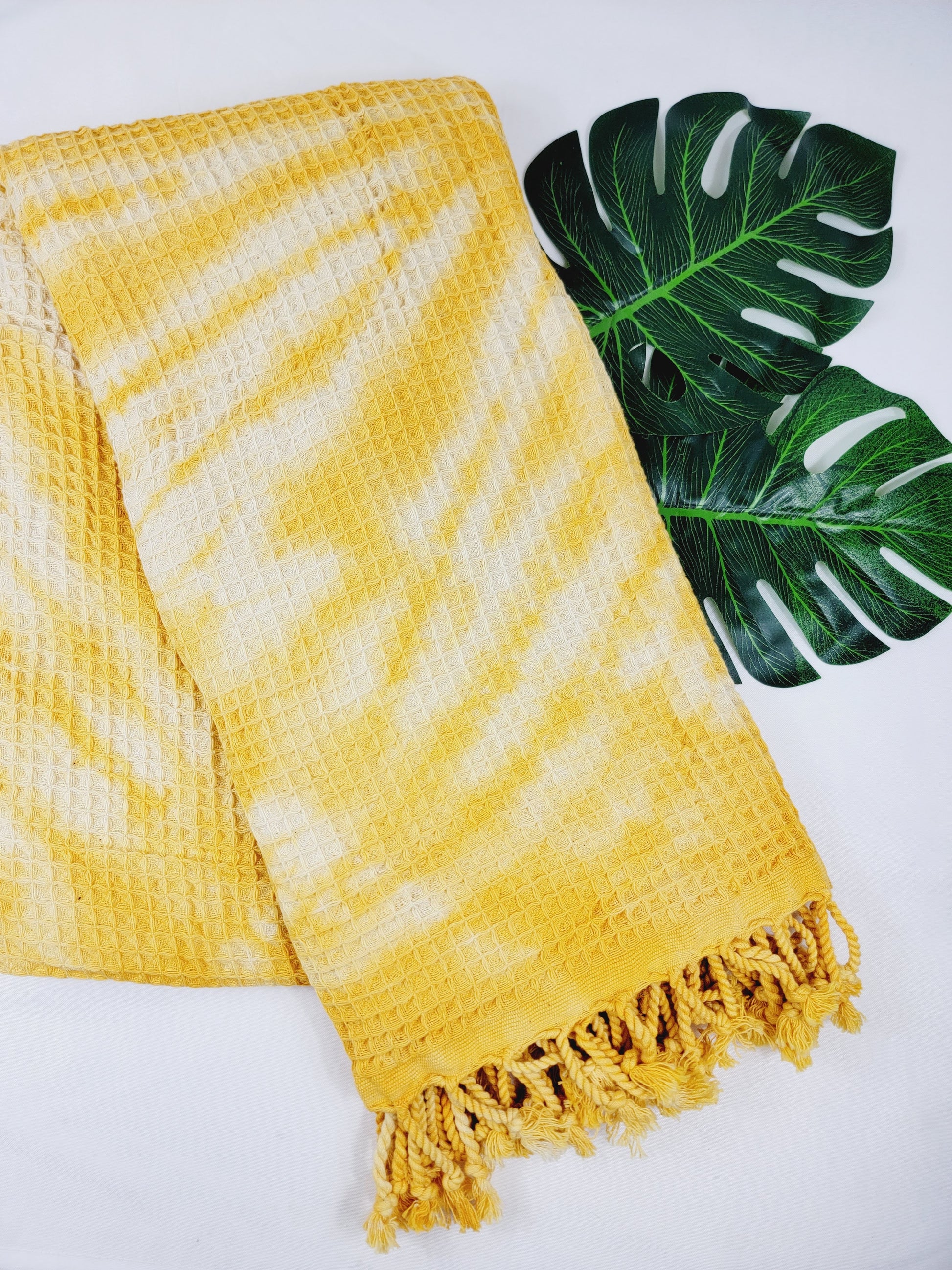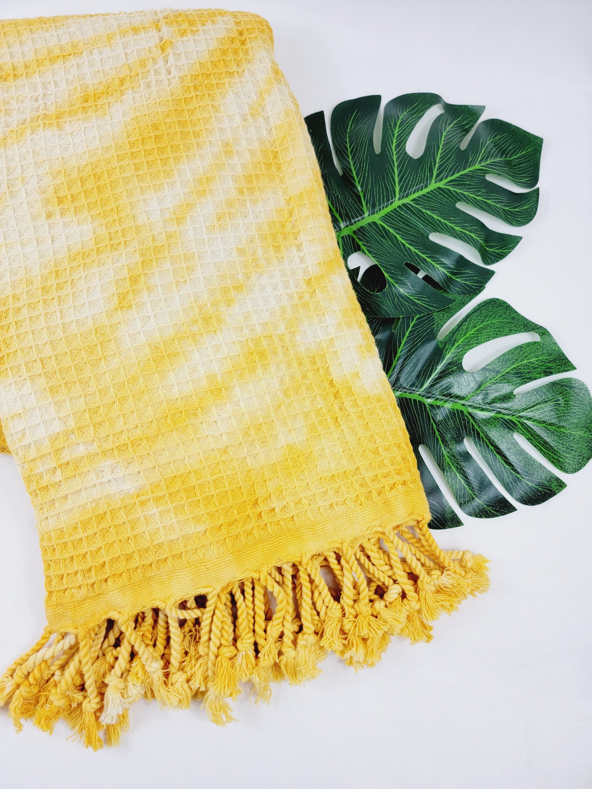Toalla de baño, Toalla de gofre, Toalla de playa turca, Tie dye hecho a manoDYEWAFFLE-YELLOW