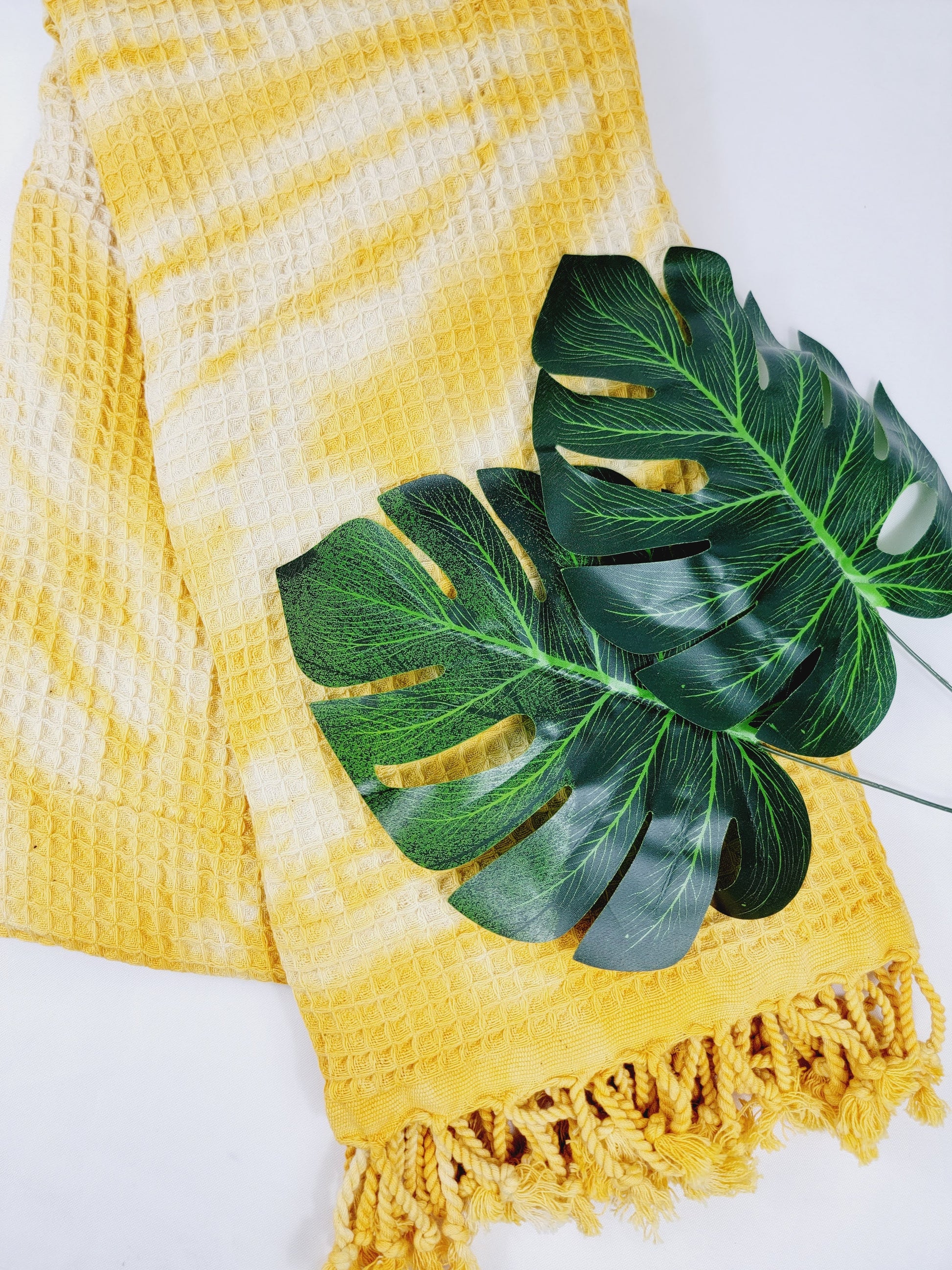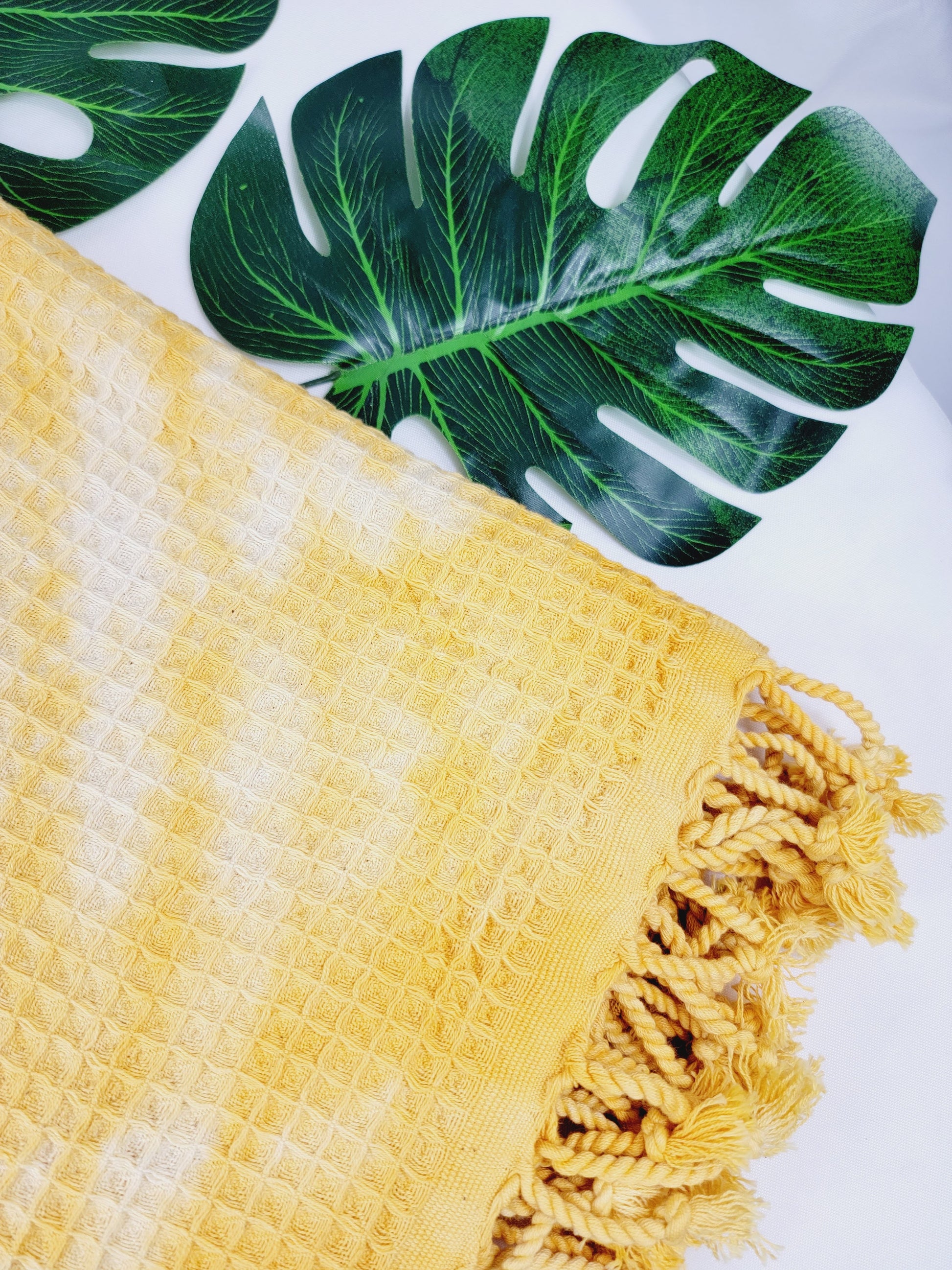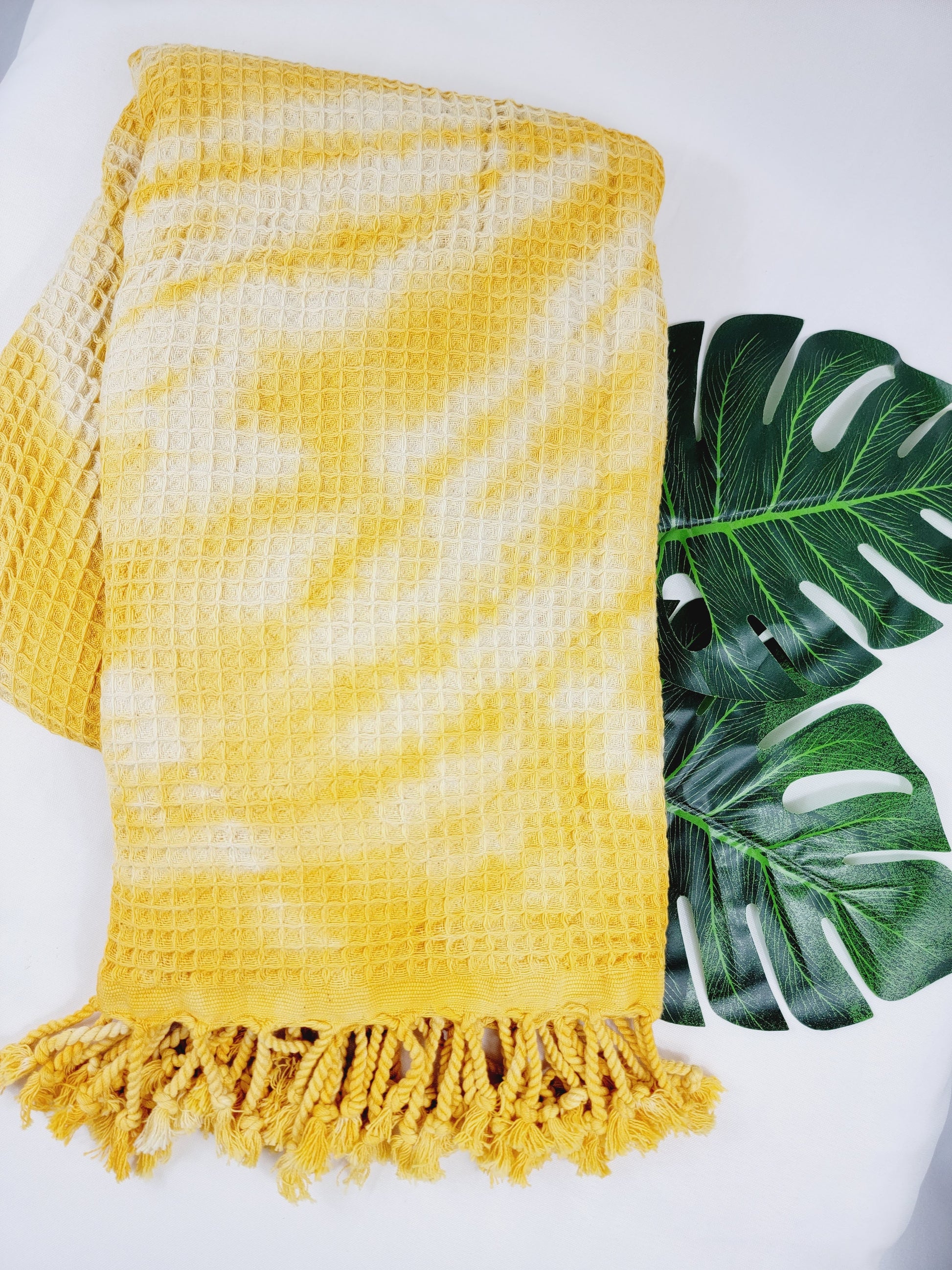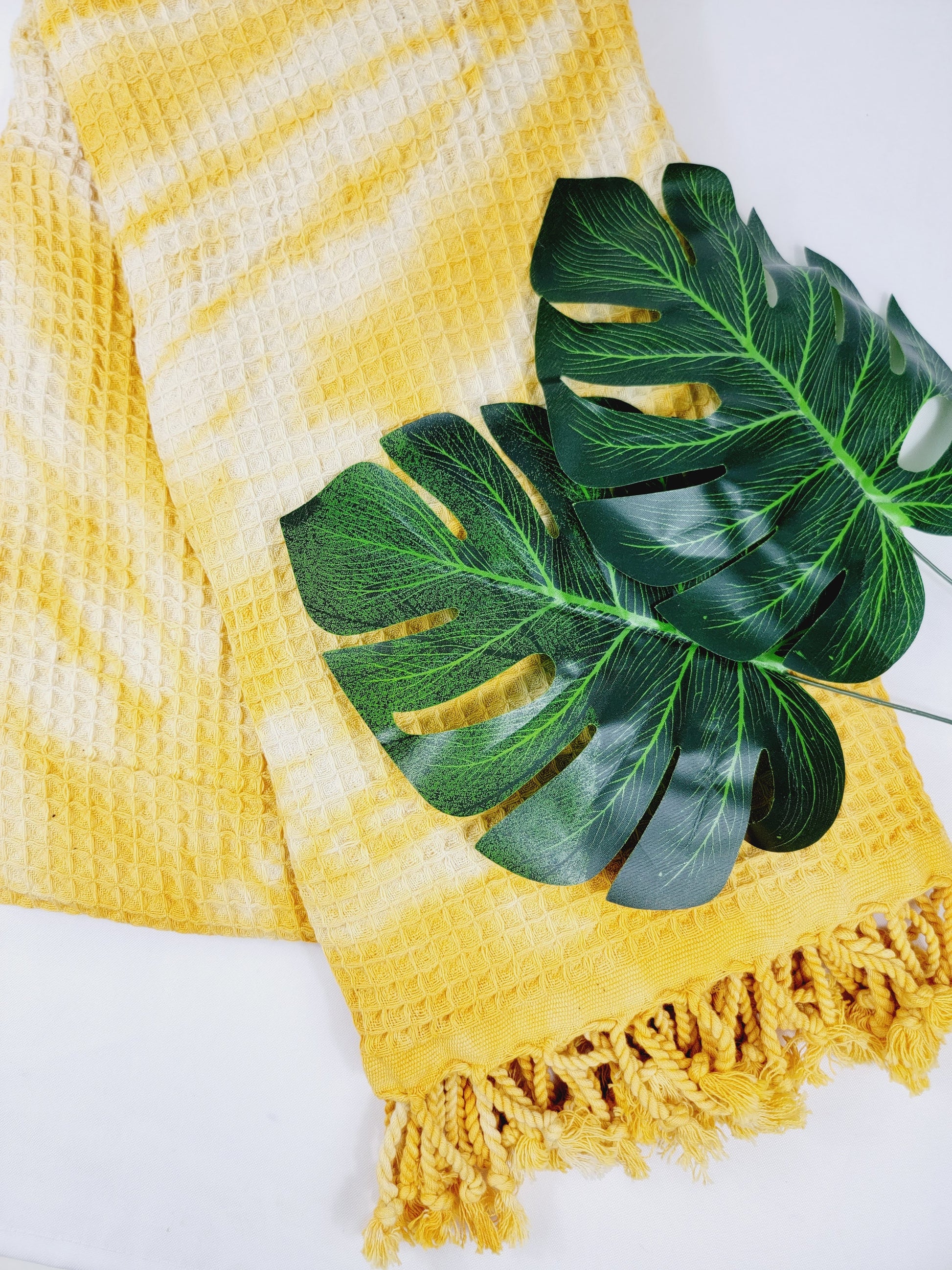 Toalla de baño, Toalla de gofre, Toalla de playa turca, Tie dye hecho a manoDYEWAFFLE-YELLOW