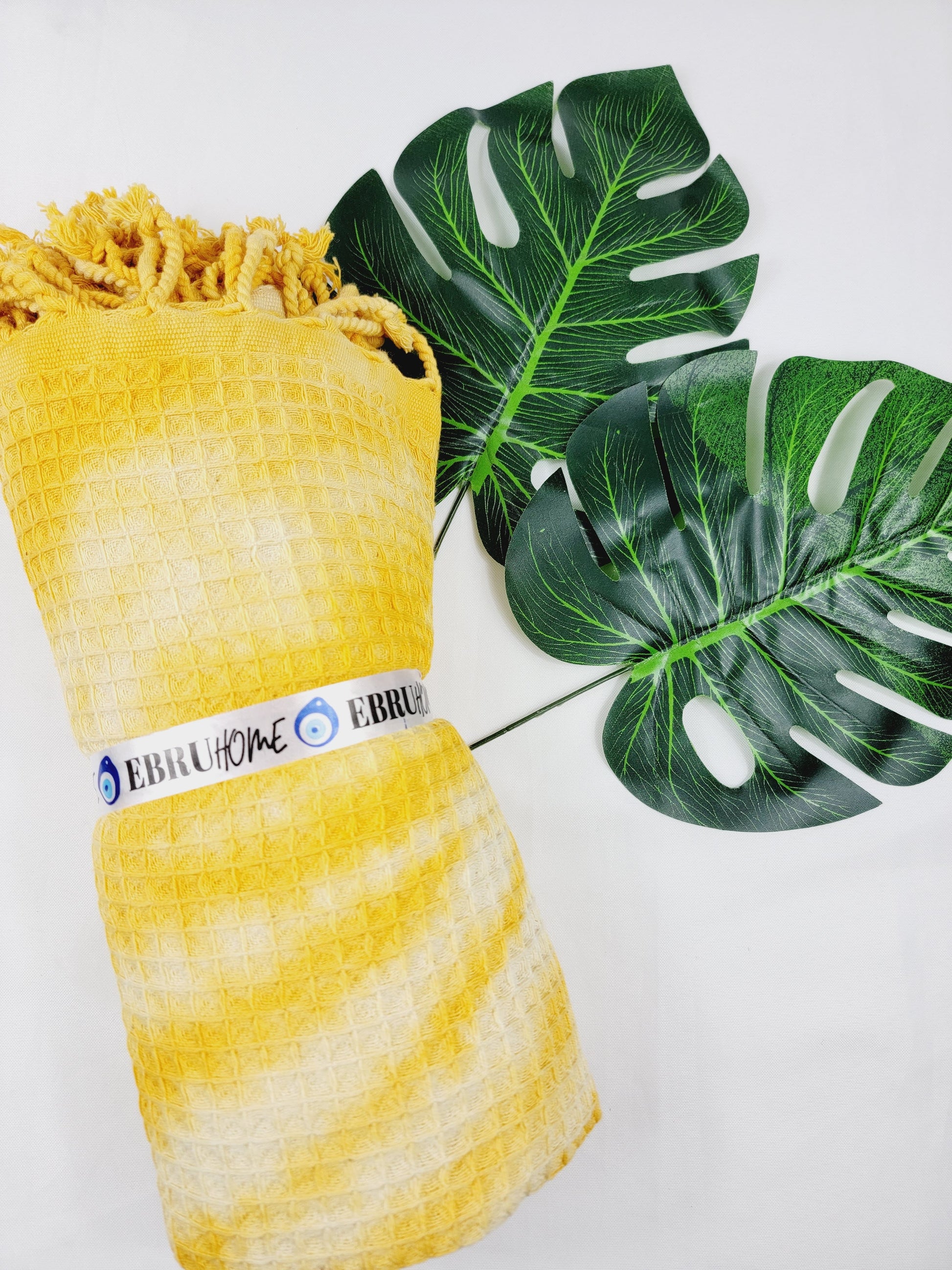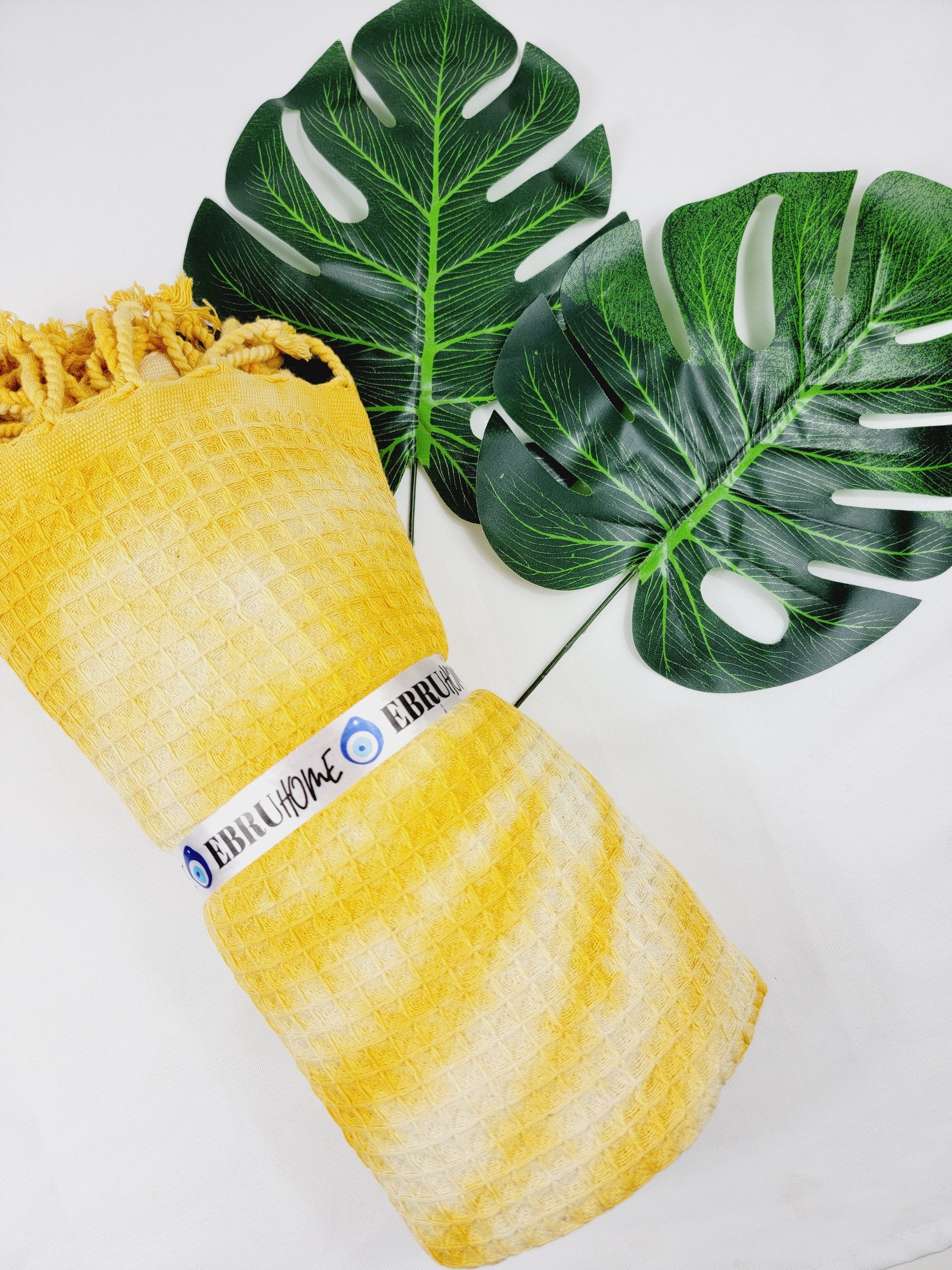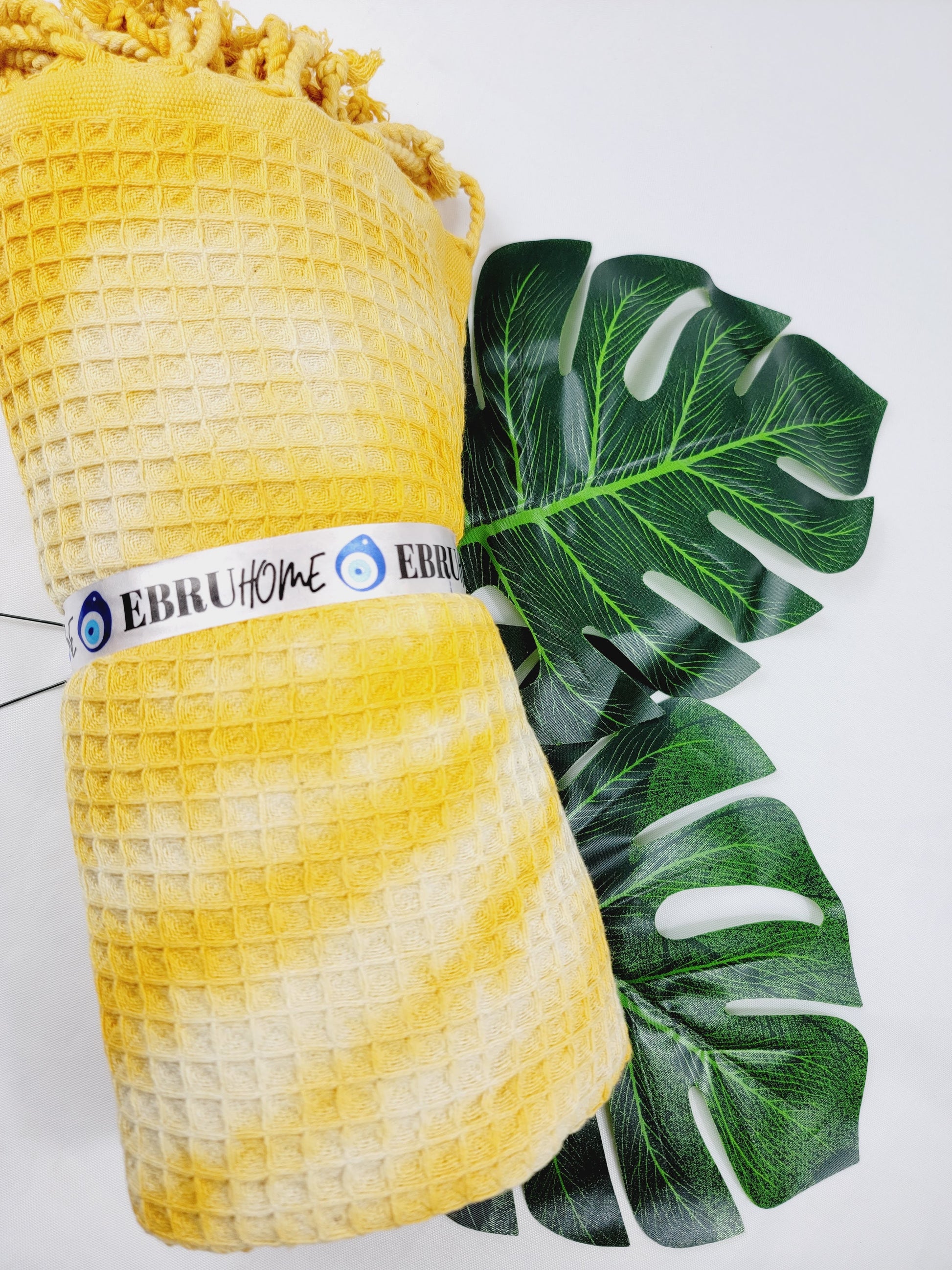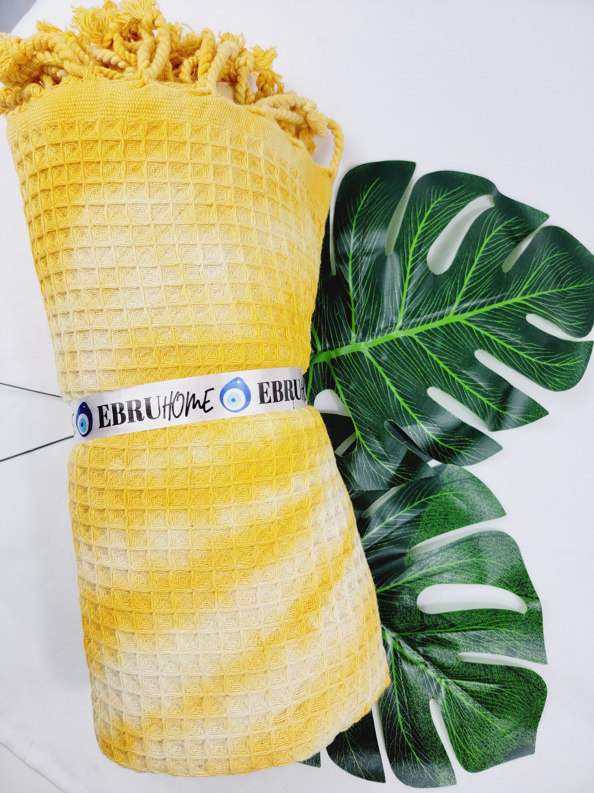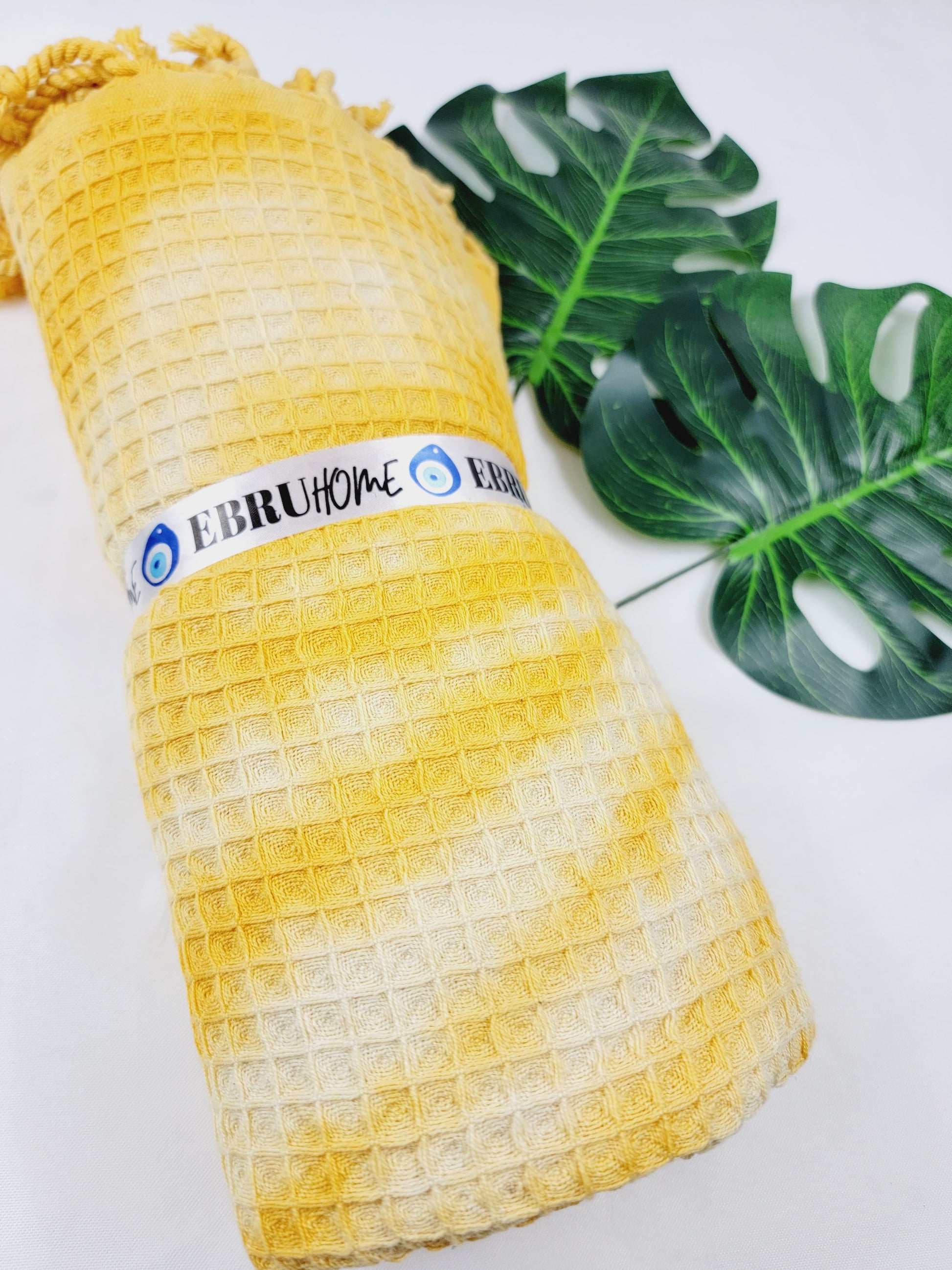 Toalla de baño, Toalla de gofre, Toalla de playa turca, Tie dye hecho a manoDYEWAFFLE-YELLOW
