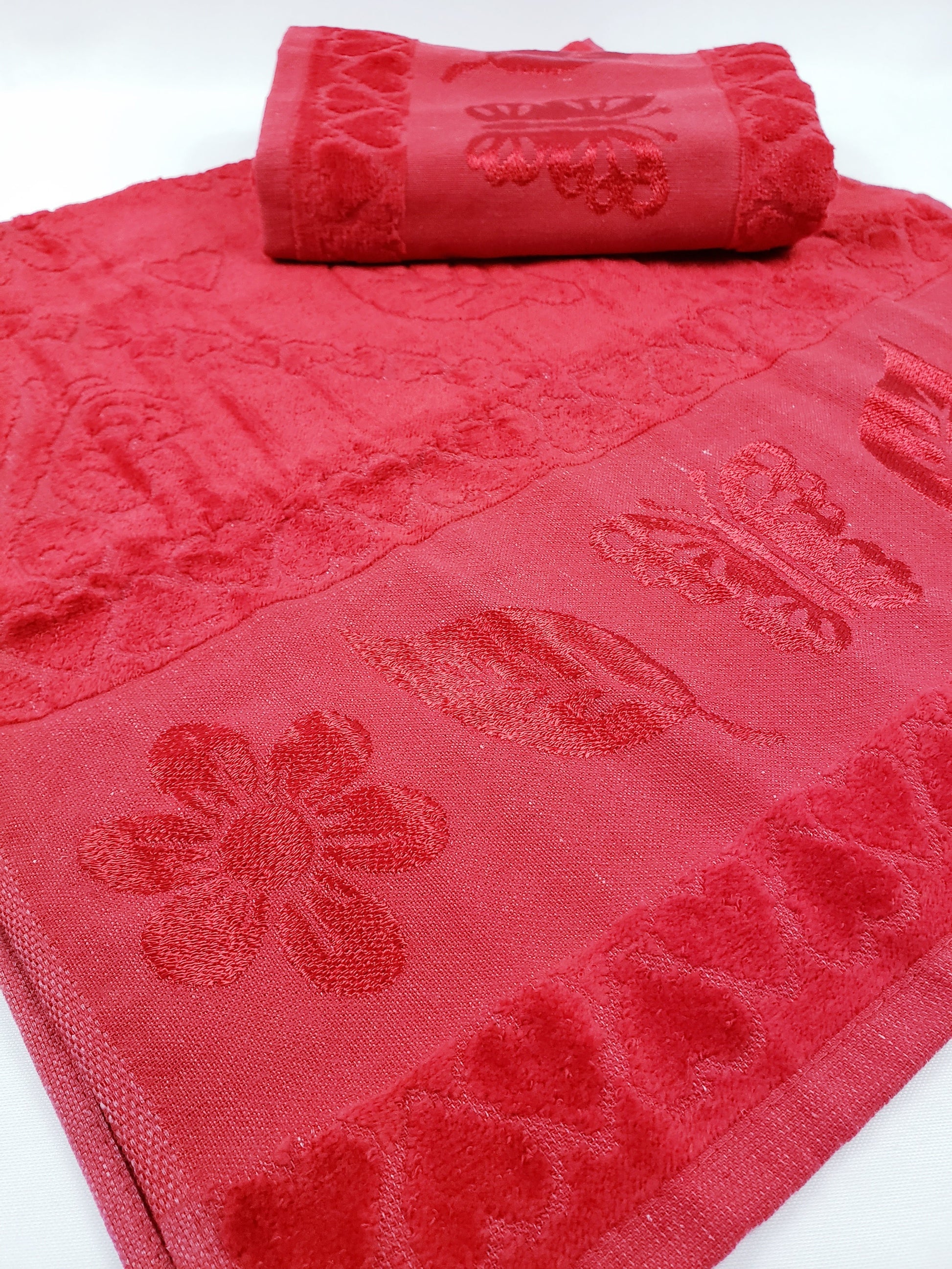 BATH / HAND VELVET TOWEL - Red Butterfly