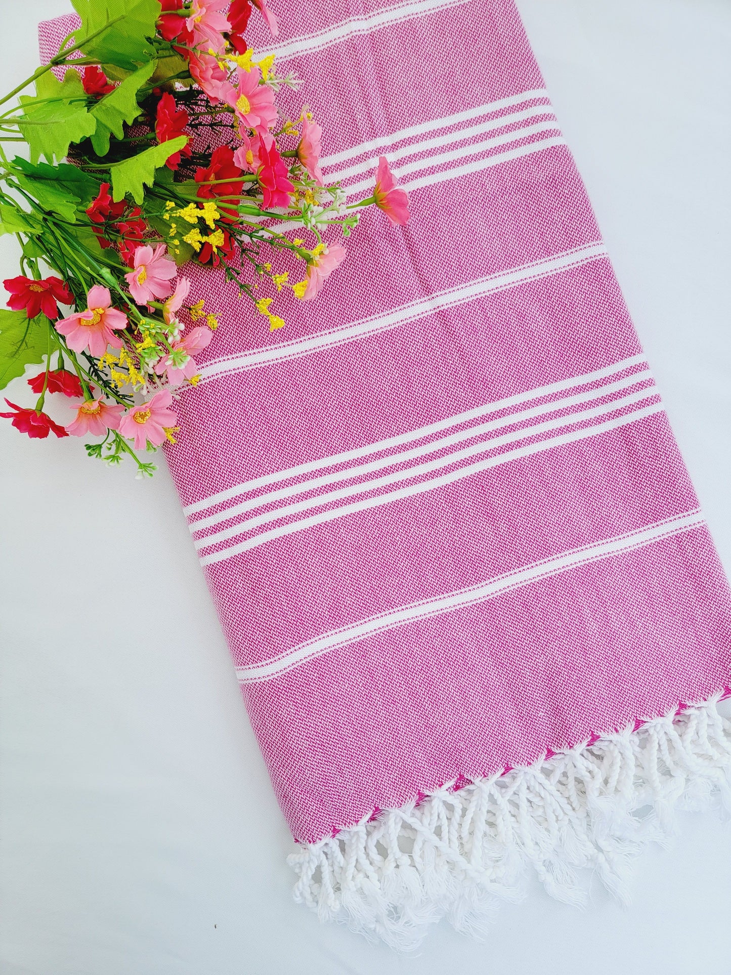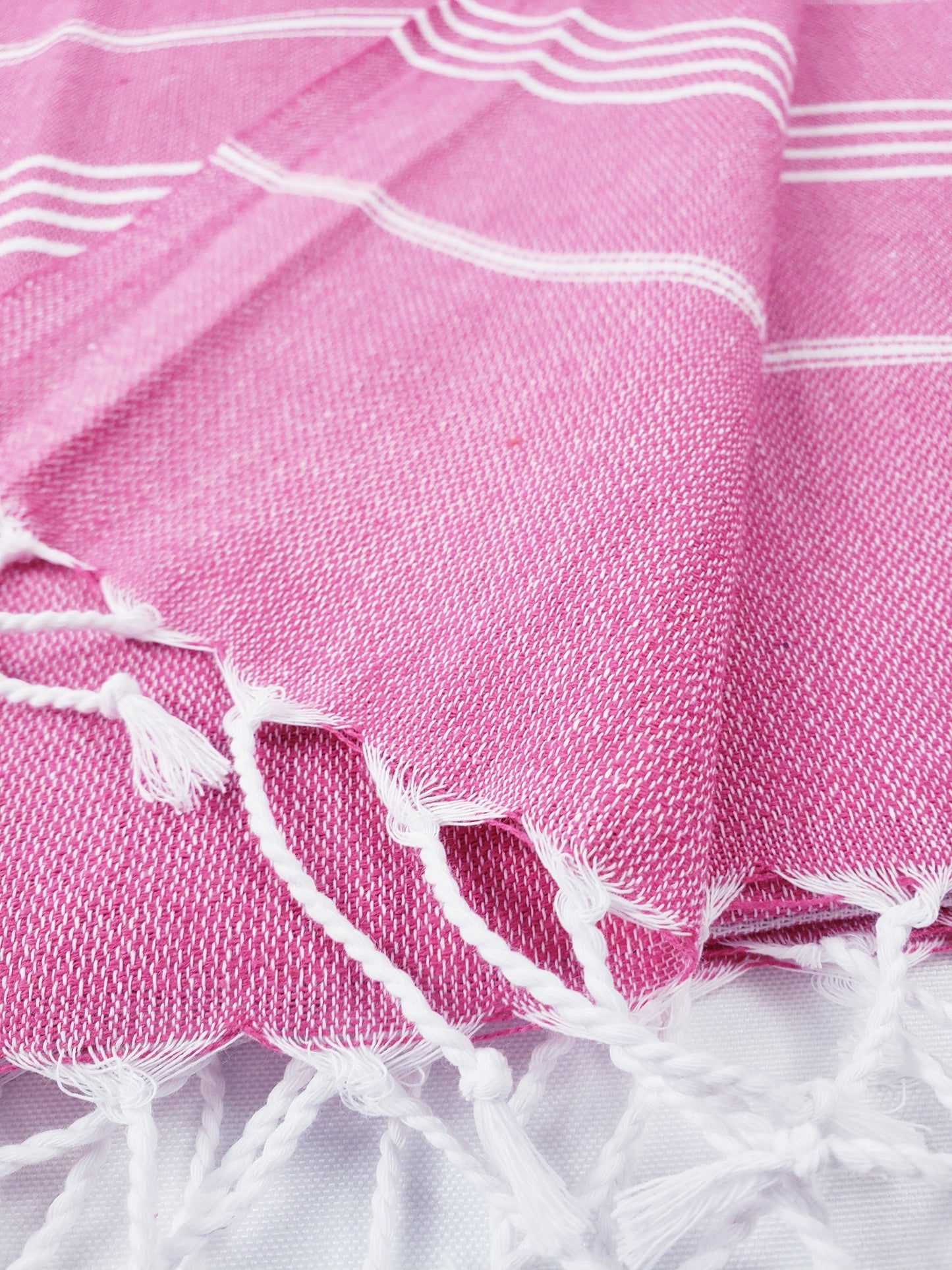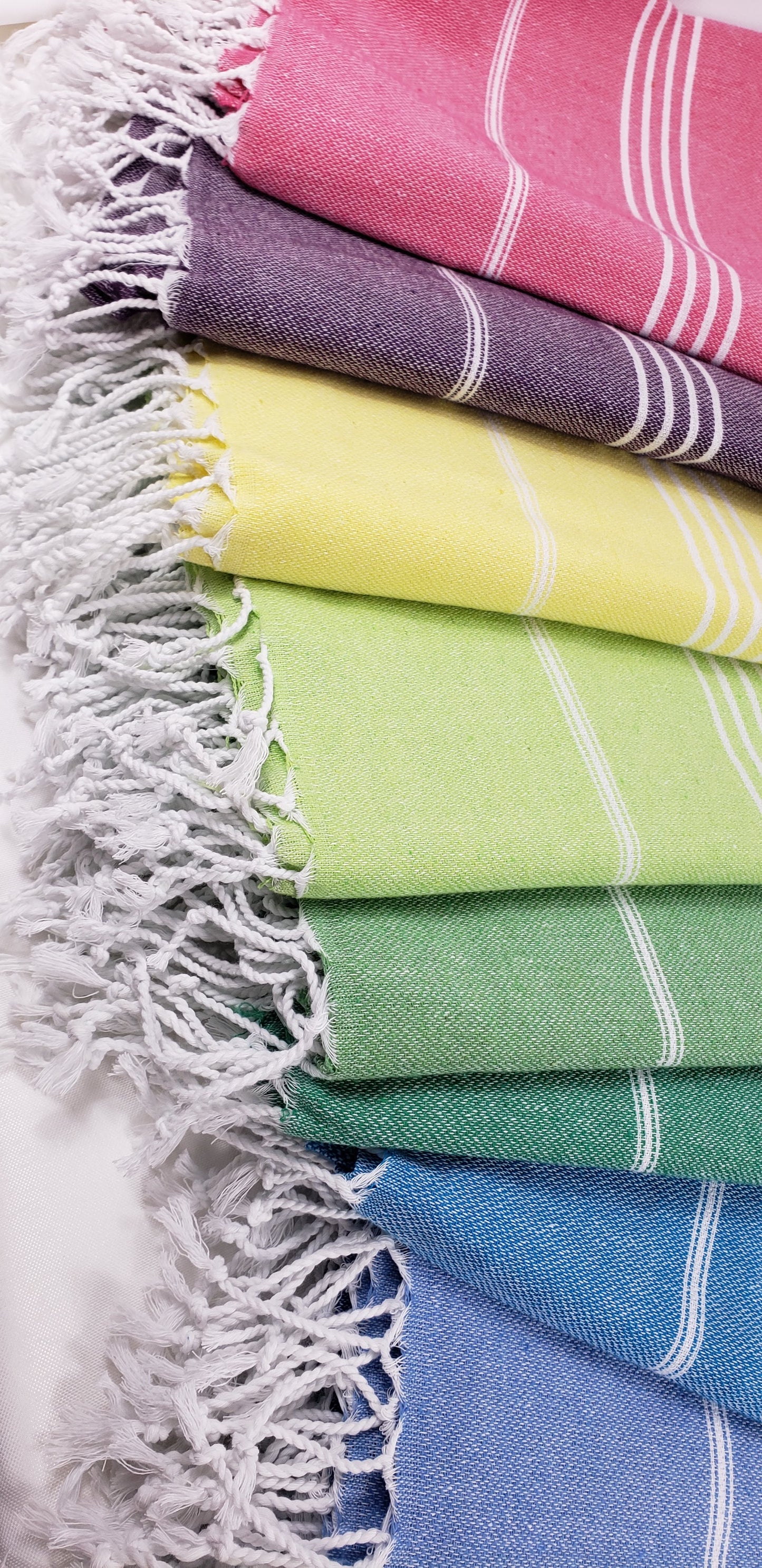 Peshtemal is a lightweight towel that absorb water as fast as a traditional towel, but dries faster. The towel takes up less space and is easy to carry. For this reason, it is used as an alternative to the towel in bathrooms, for baby care, and in other body care facilities like spas. The peshtemal fabric is made of 100% Pure Turkish Cotton in manually operated looms in Turkey.