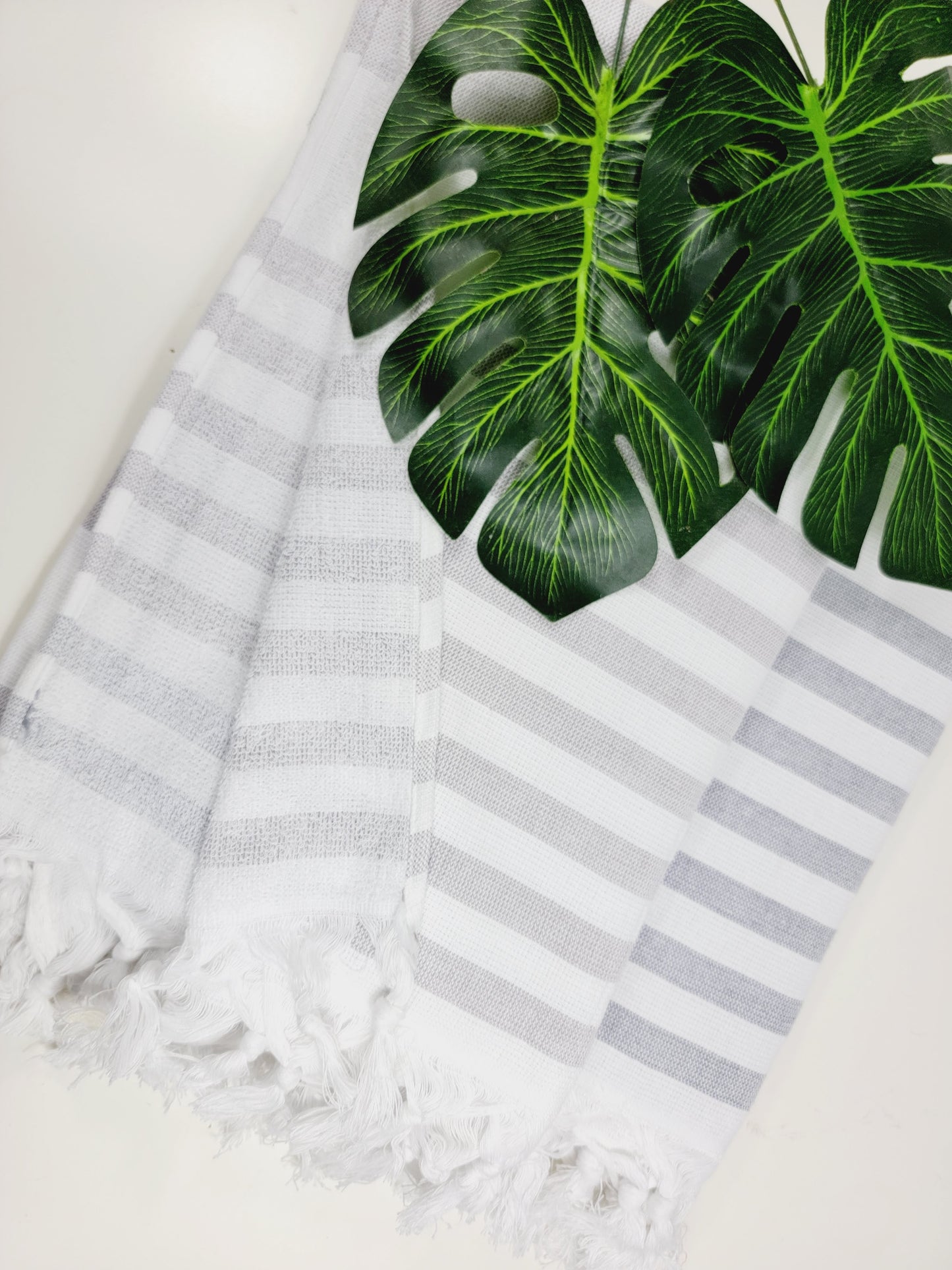 Peshtemal is a lightweight towel that absorb water as fast as a traditional towel, but dries faster. The towel takes up less space and is easy to carry. For this reason, it is used as an alternative to the towel in bathrooms, for baby care, and in other body care facilities like spas. The peshtemal fabric is made of 100% Pure Turkish Cotton in manually operated looms in Turkey.