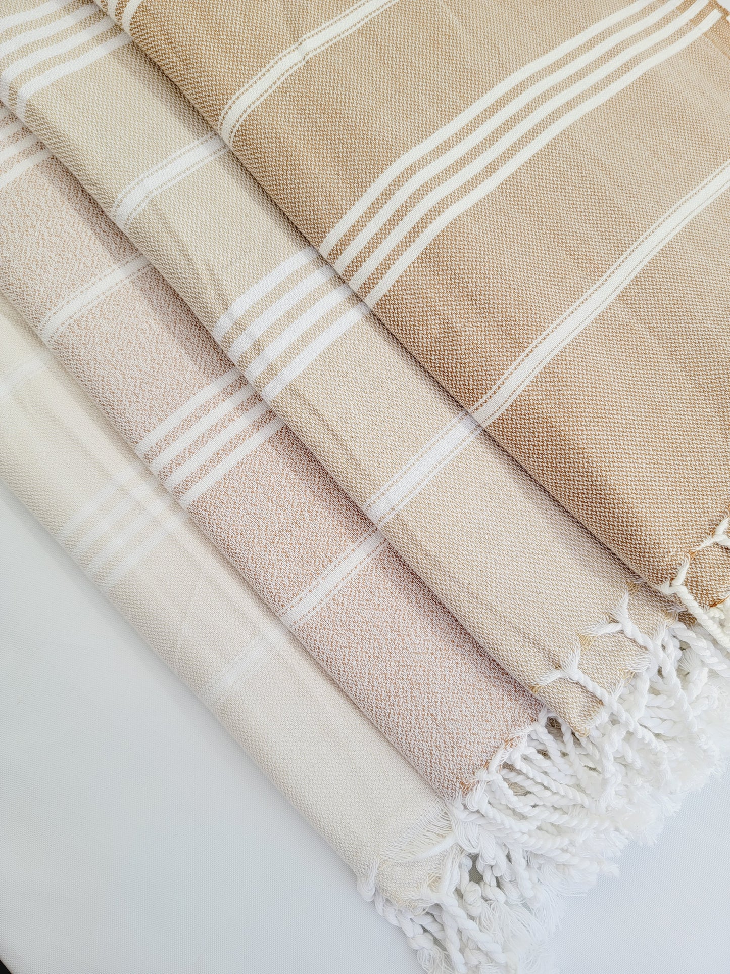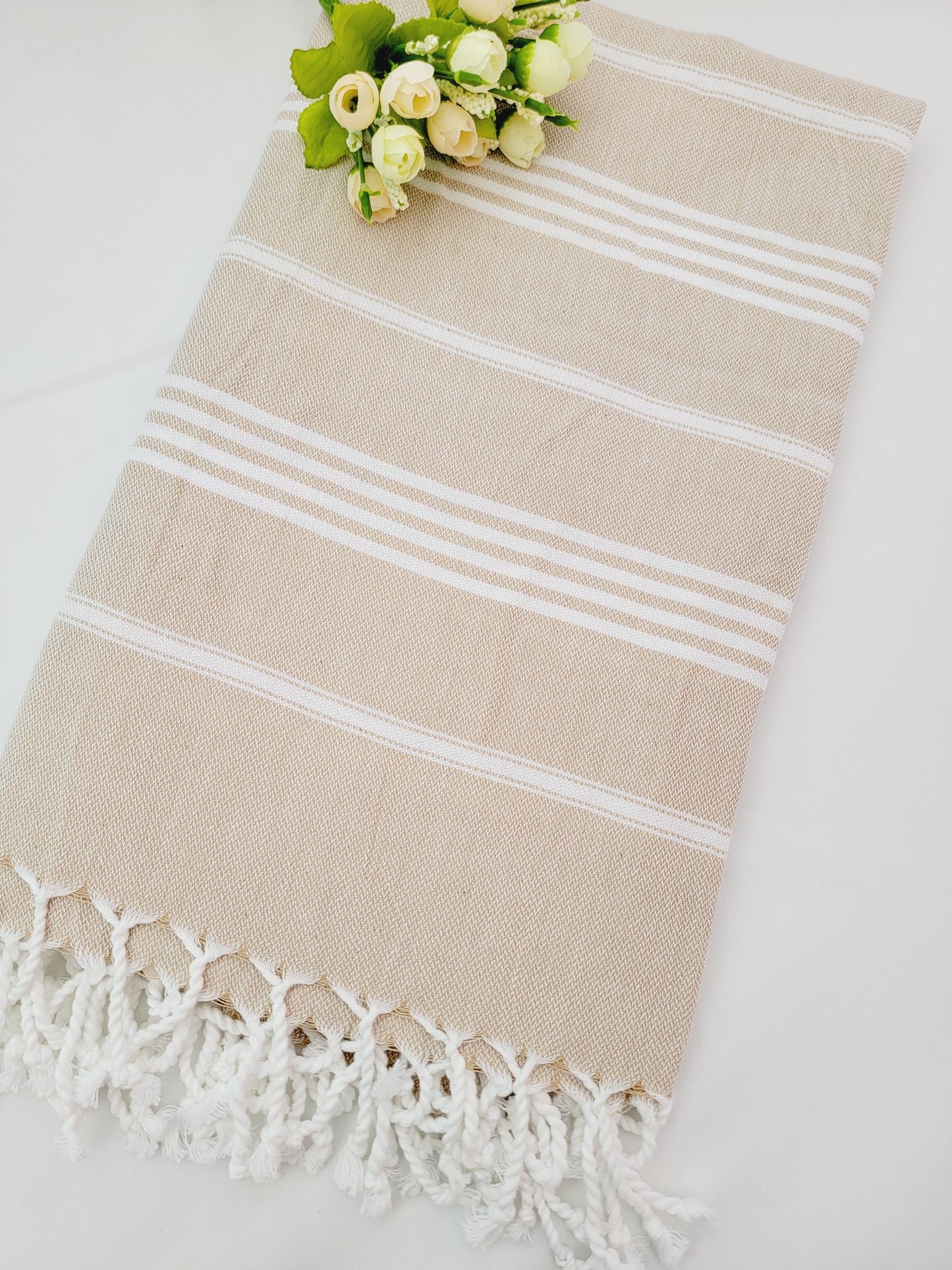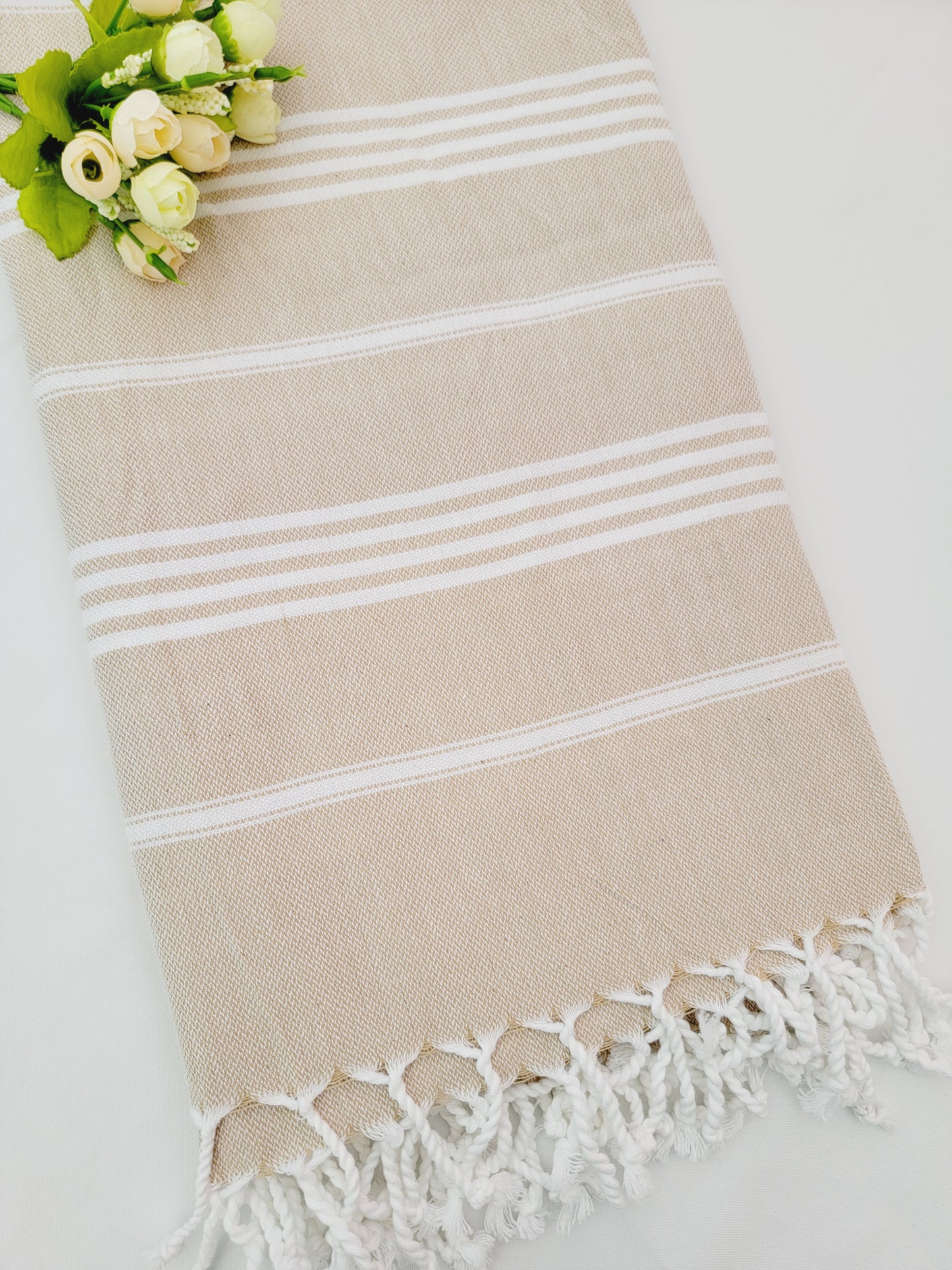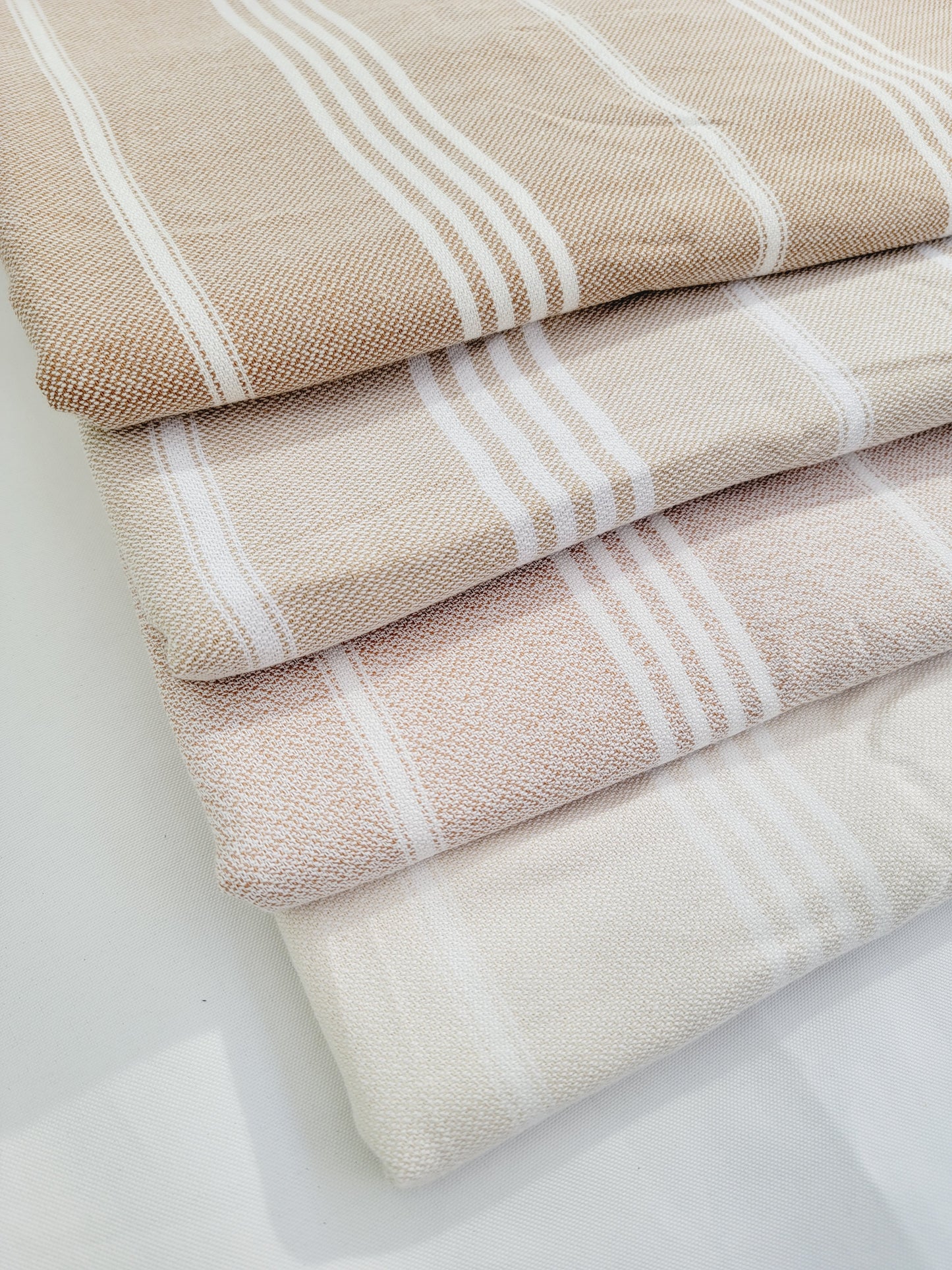 Peshtemal is a lightweight towel that absorb water as fast as a traditional towel, but dries faster. The towel takes up less space and is easy to carry. For this reason, it is used as an alternative to the towel in bathrooms, for baby care, and in other body care facilities like spas. The peshtemal fabric is made of 100% Pure Turkish Cotton in manually operated looms in Turkey.