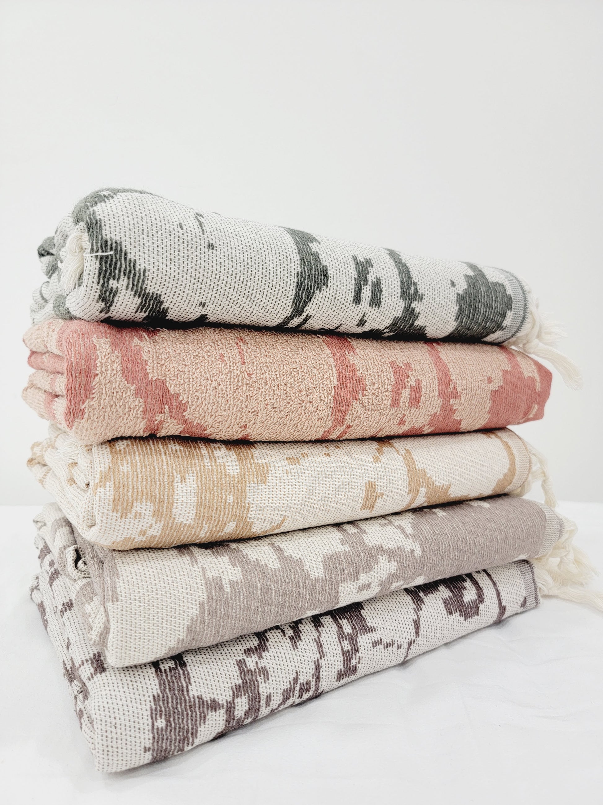 This multi-purpose towel features a striped terry cloth side and a flat side, making it suitable for both beach and bath use. Ideal for beach trips, spa visits, swimming or pool use, as well as a shawl or blanket. Made in Turkey, this lightweight towel has the absorbency of a traditional towel, but dries much quicker. Its compact size makes it convenient for travel and can be used as an alternative to traditional bathroom towels, for baby care, and in various body care facilities such as spas.