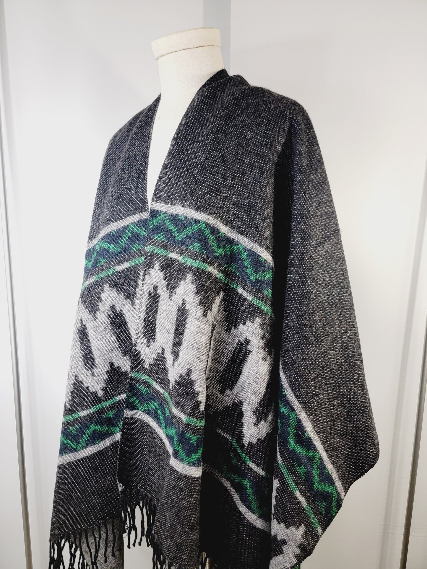 Poncho Shawl, Extra soft - Reversible Green/Gray
