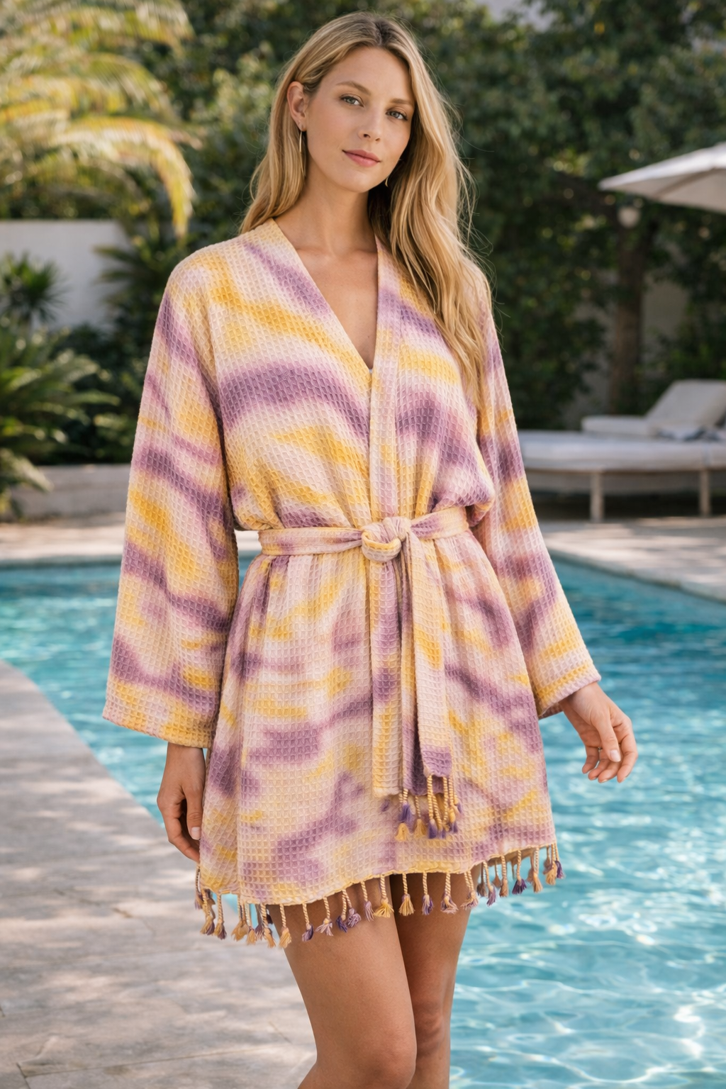 Designed in a one-size, oversized unisex fit, this robe features wide sleeves, a waist tie closure, and side slits that provide ease of movement and a comfortable leg opening. Versatile and effortless, it transitions seamlessly from bath to beach, pool, spa, or lounging at home.
