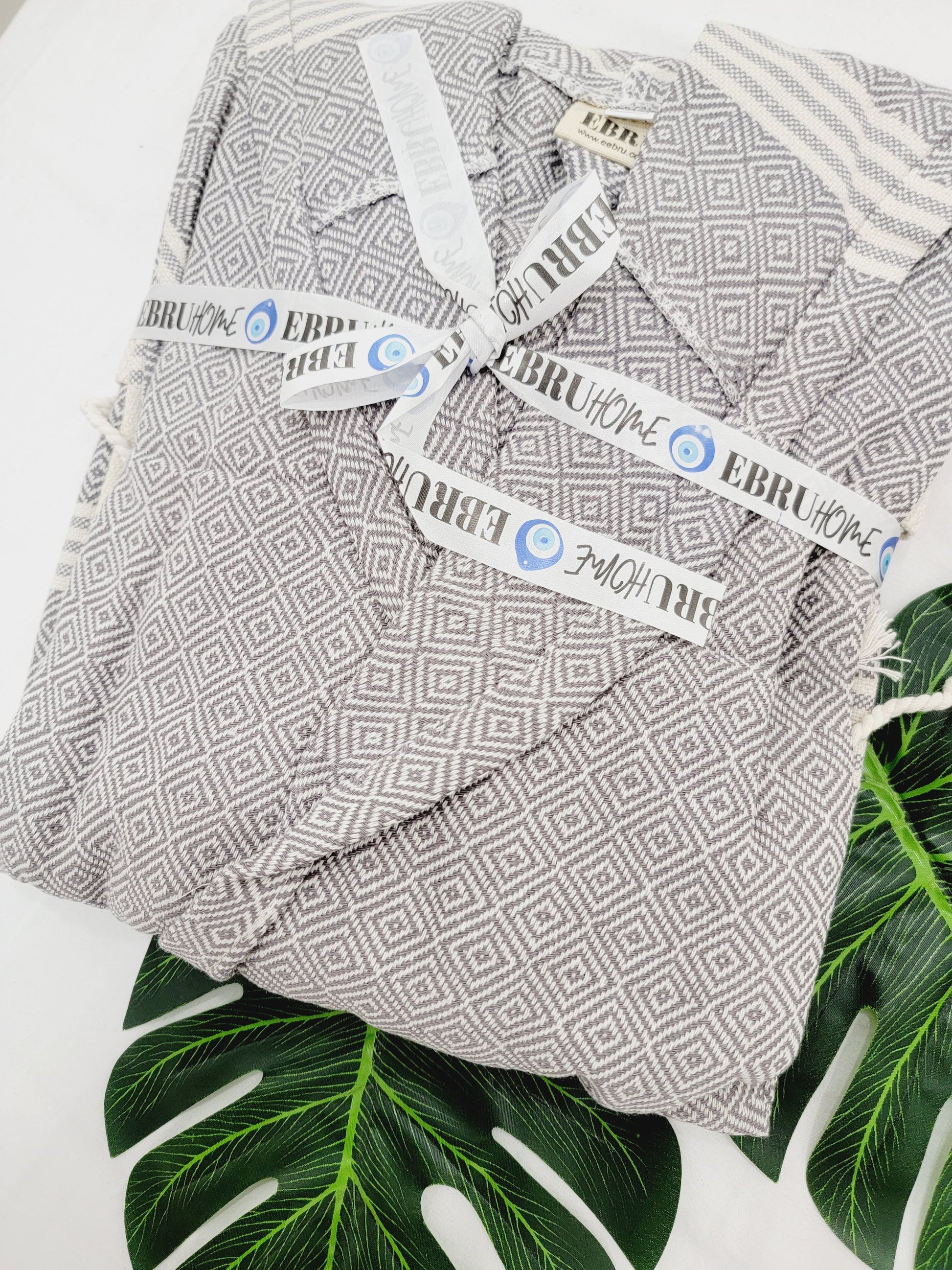 This robe is an ideal present for daily wear or as a gift for birthdays, anniversaries, weddings, Christmas, housewarmings, or graduations. Made of 100% Turkish Cotton (TURKISH TOWELS), it comes in various colors and includes a waist tie and deep pocket. This charming bathrobe is suitable for use in the bath, pool, SPA, or beach.