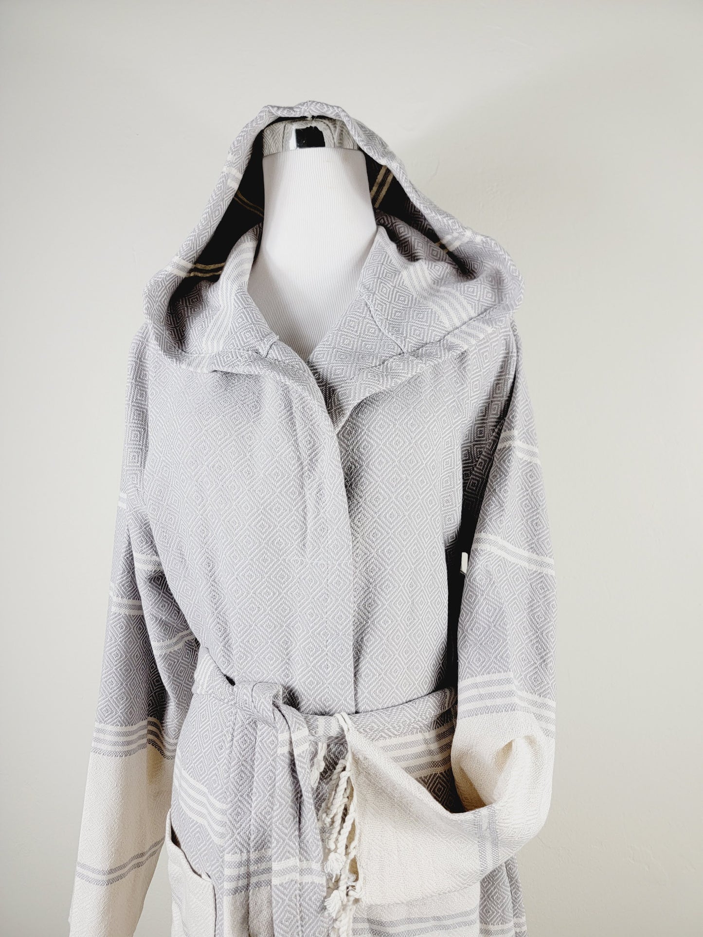 Unisex Robe, Beach or spa Robe with pockets - Gray