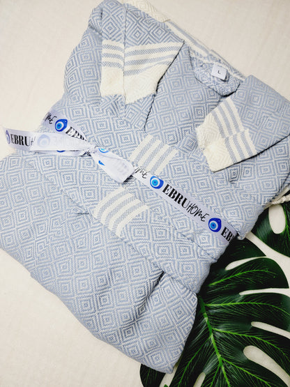 This robe is an ideal present for daily wear or as a gift for birthdays, anniversaries, weddings, Christmas, housewarmings, or graduations. Made of 100% Turkish Cotton (TURKISH TOWELS), it comes in various colors and includes a waist tie and deep pocket. This charming bathrobe is suitable for use in the bath, pool, SPA, or beach.