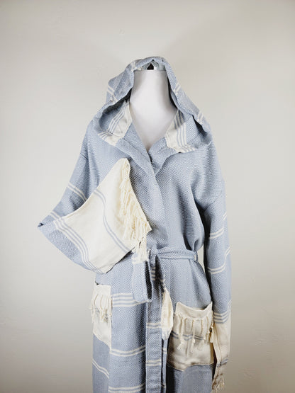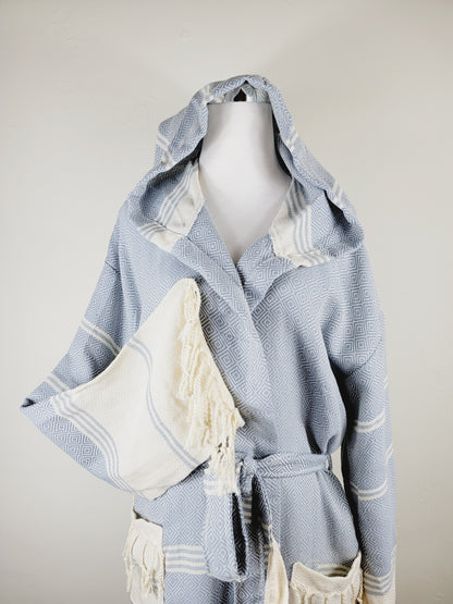 Unisex Robe, Beach or spa Robe with pockets - Sky Blue