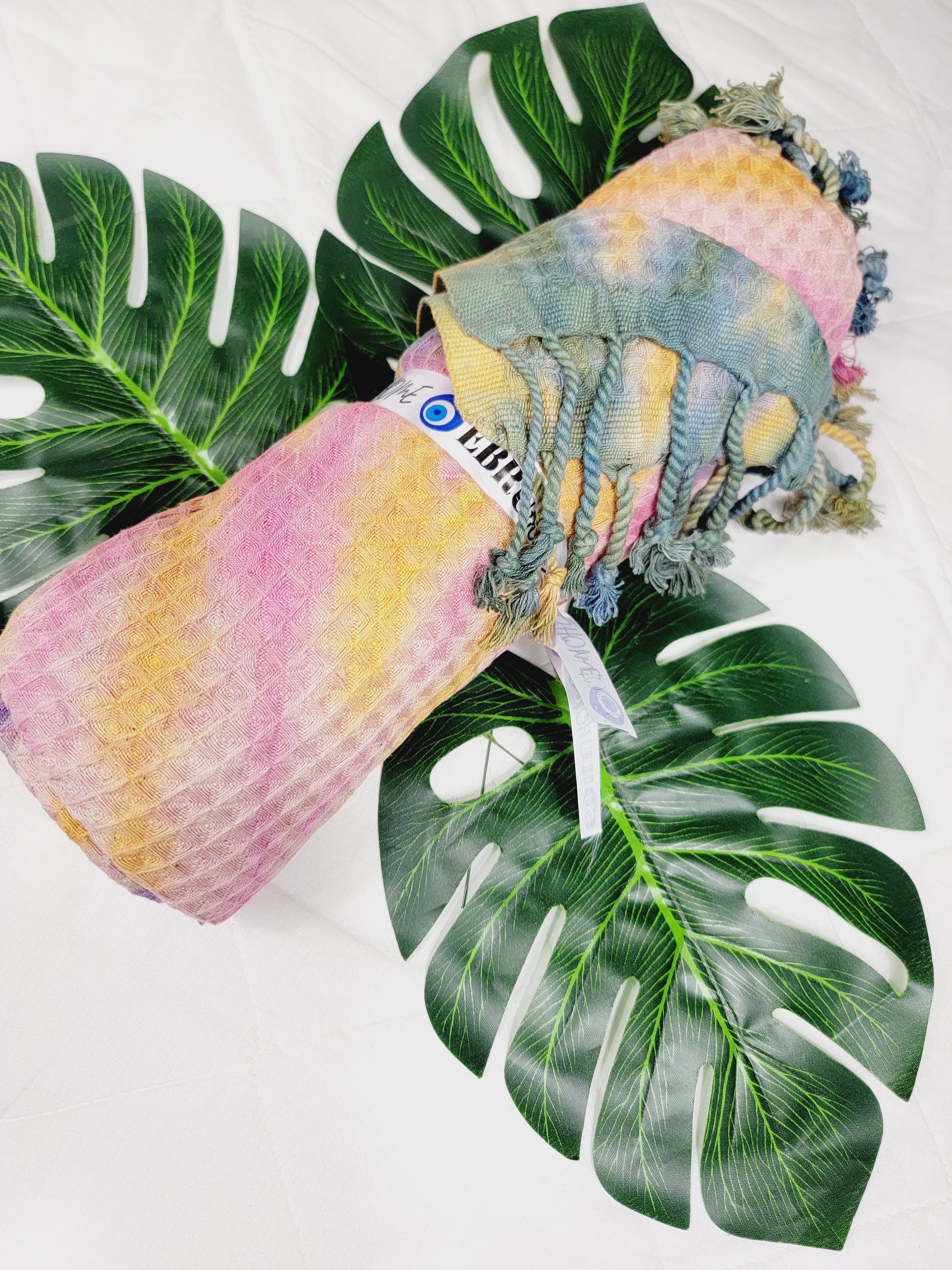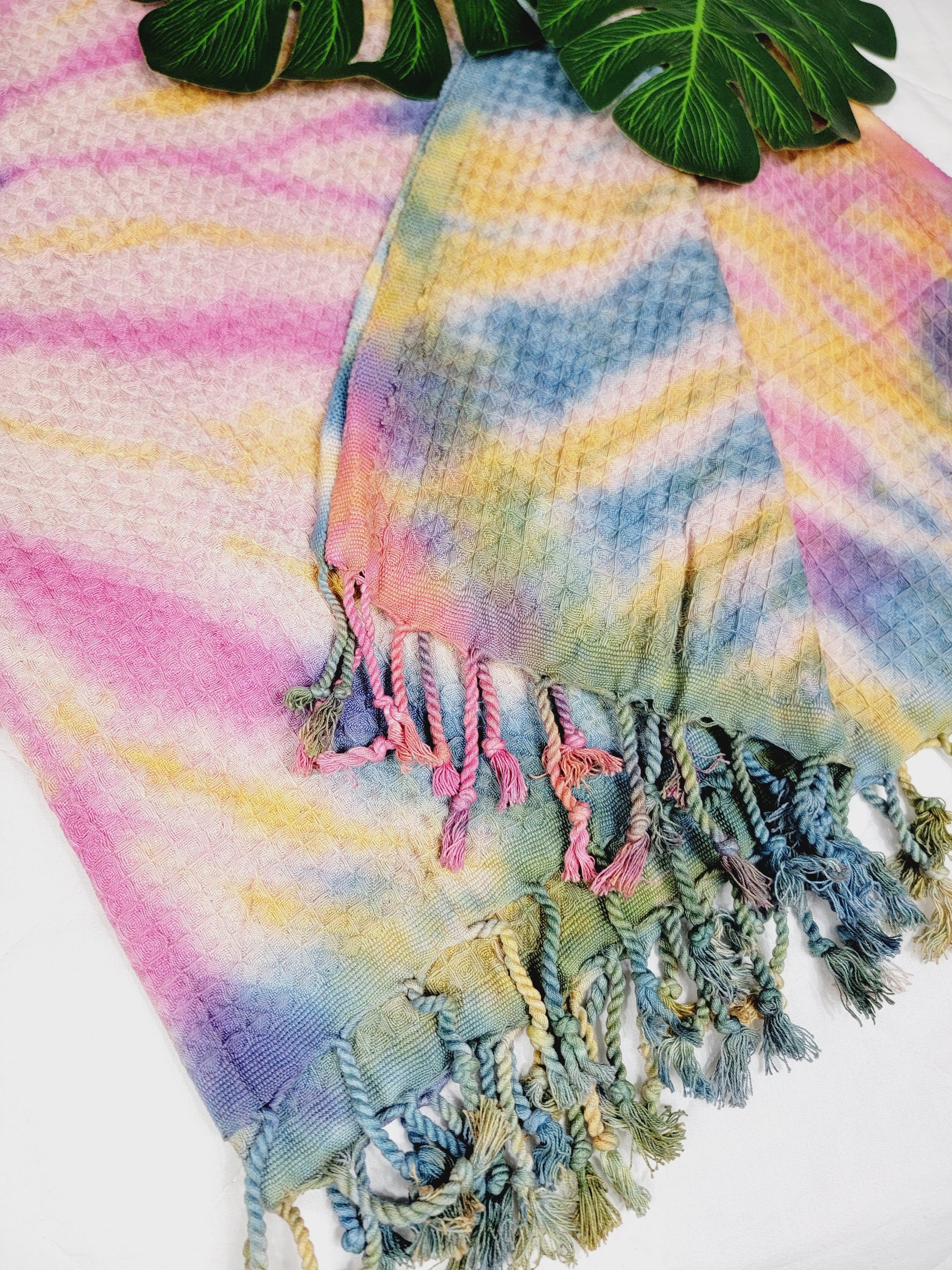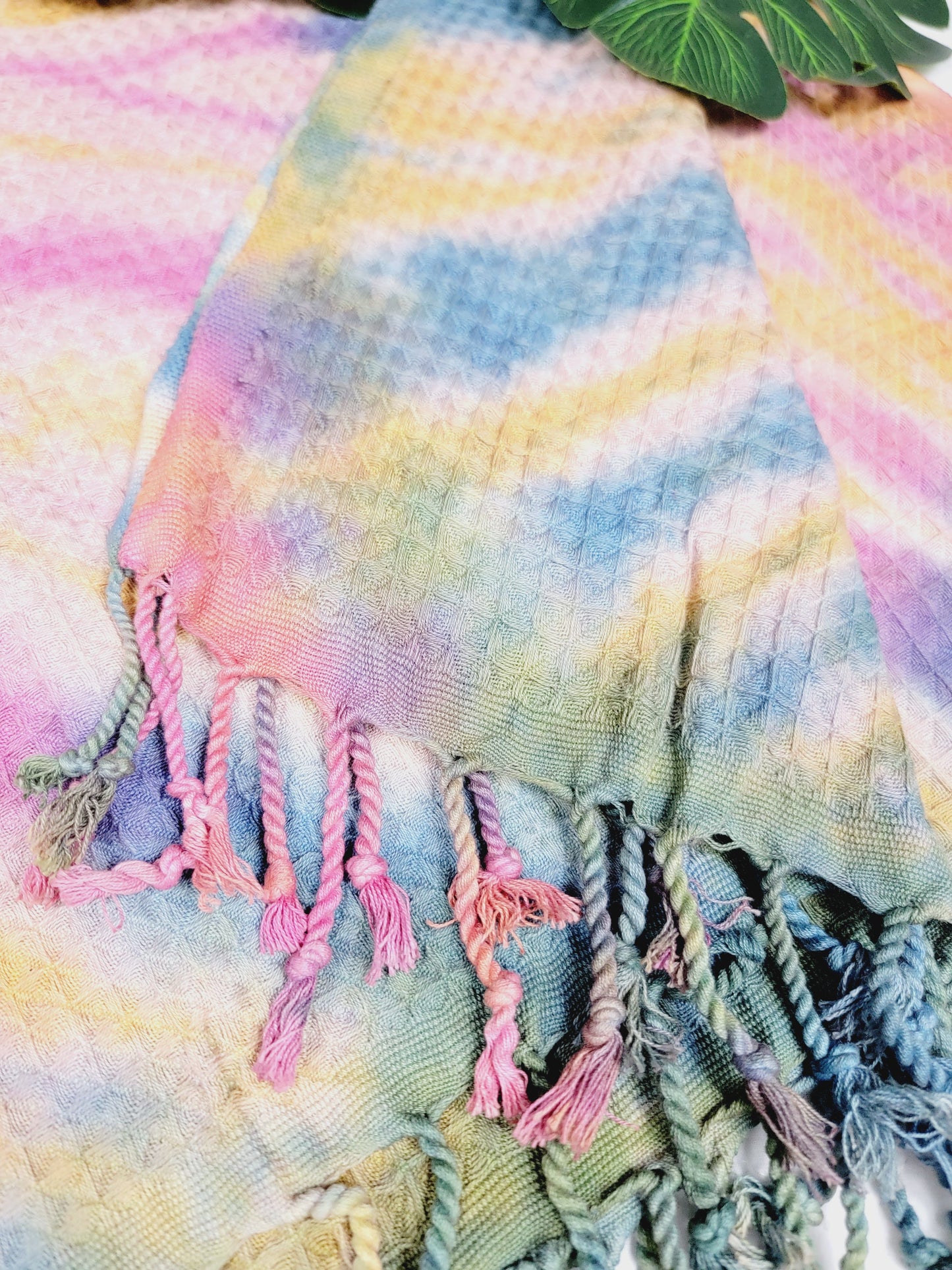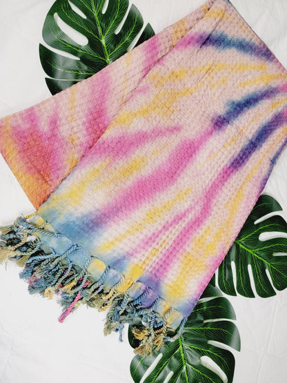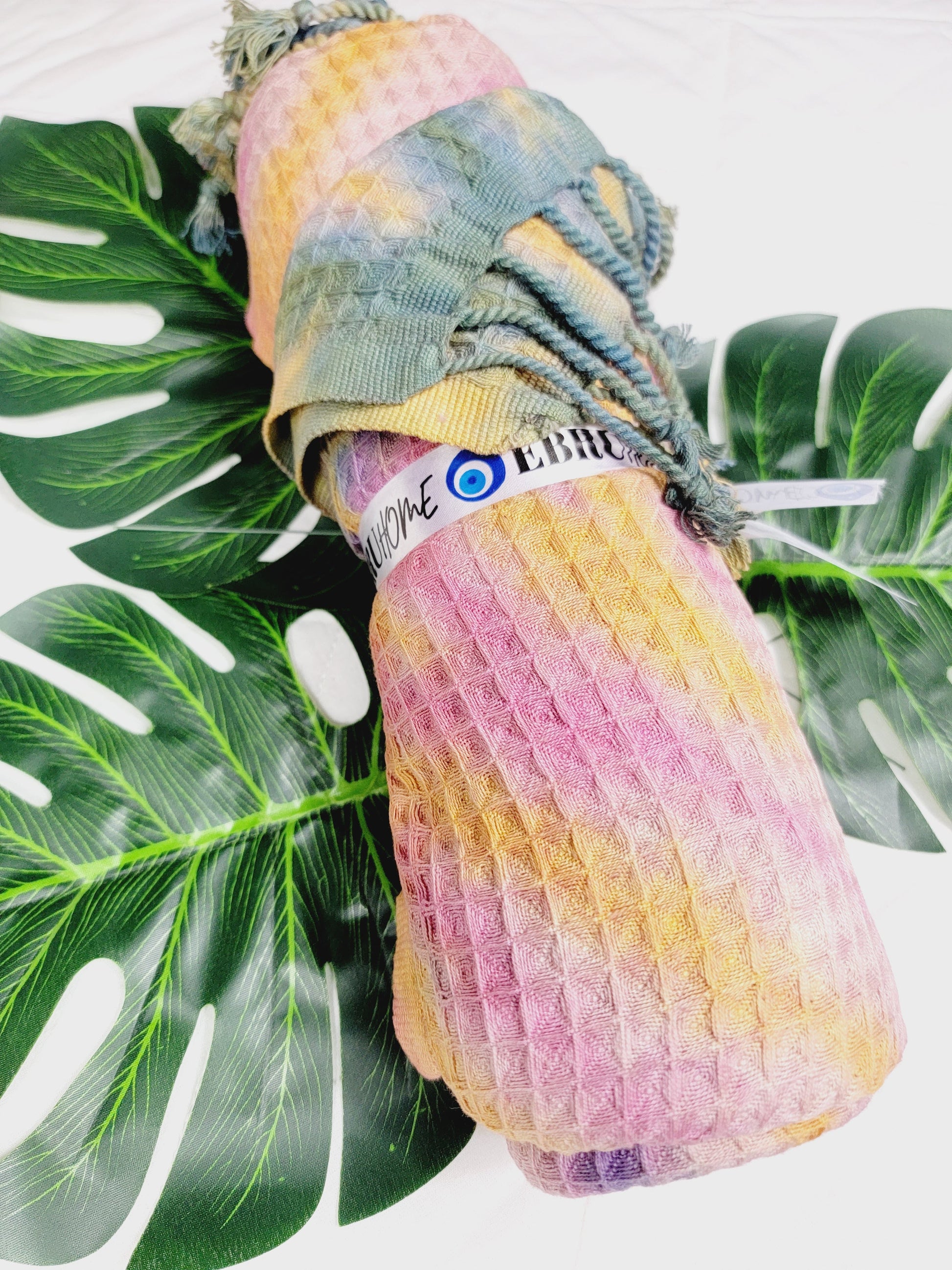 Bath Towel, Waffle Towel, Turkish Beach Towel, Handmade Tie dye