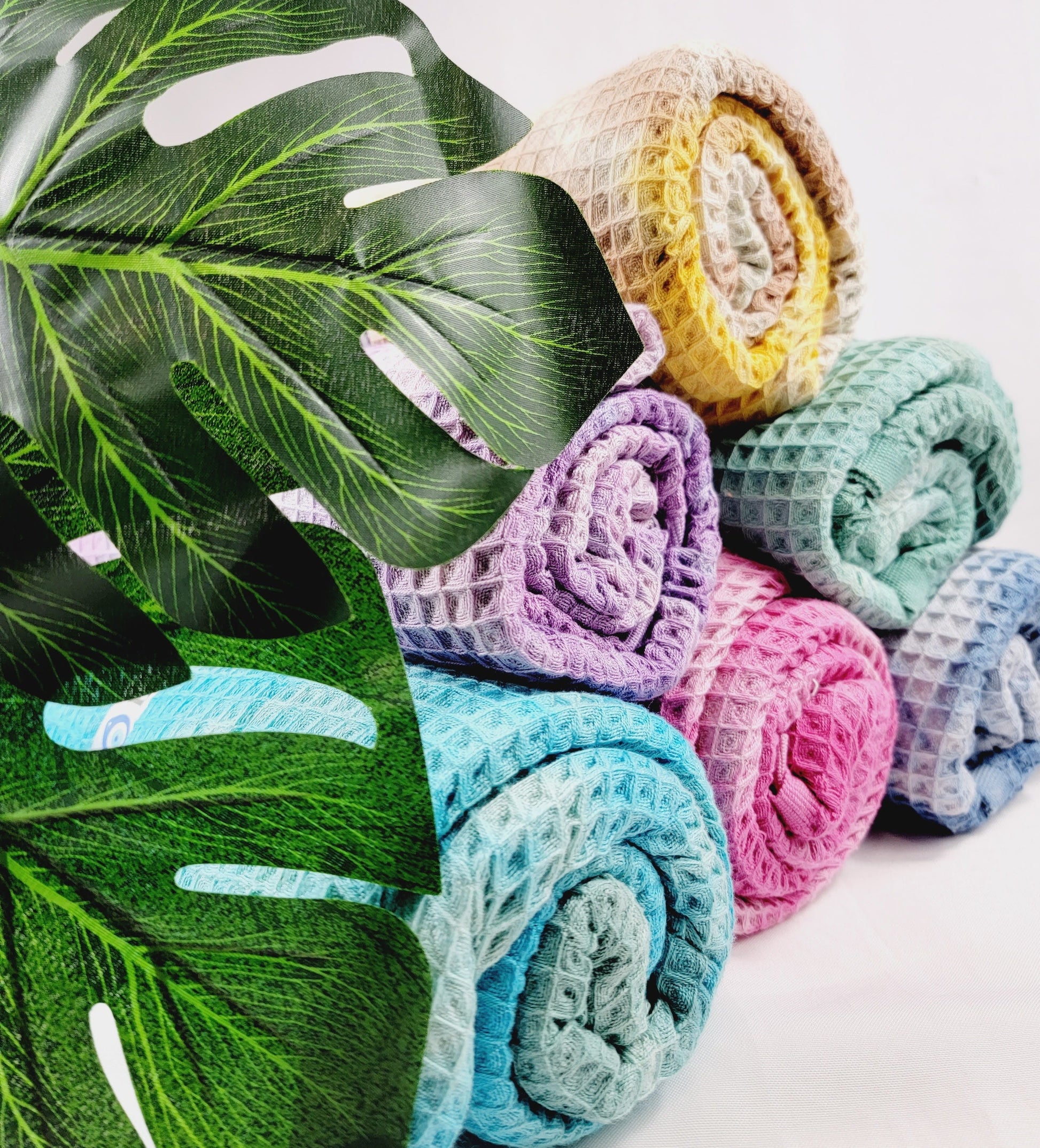 Compared to terry cloth towels, waffle towels have a larger surface area because their honeycomb design. While they certainly look beautiful, their construction makes them super functional too. Waffle towels trap moisture better and dry quicker than other types of towels. They’re also much more lightweight and breathable, so they'll stay fresher longer. If you're over ultra plush cotton towels that seem to stay damp for hours, waffle towels will be your new best friend.